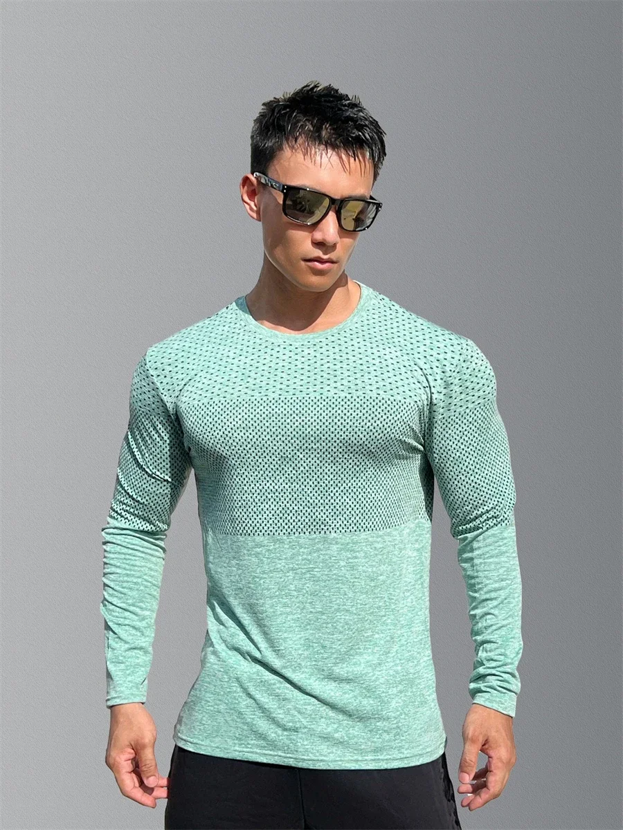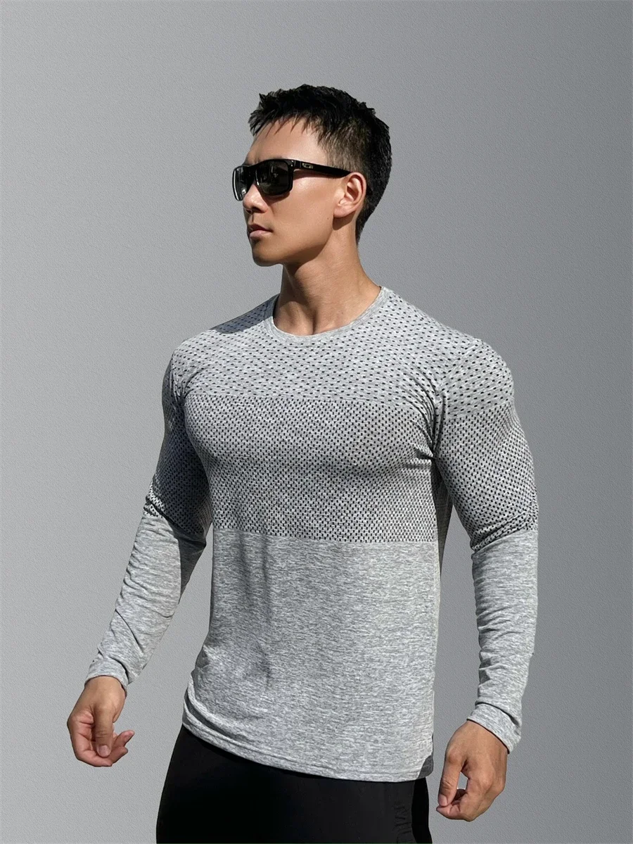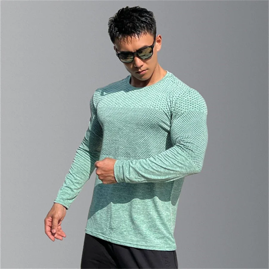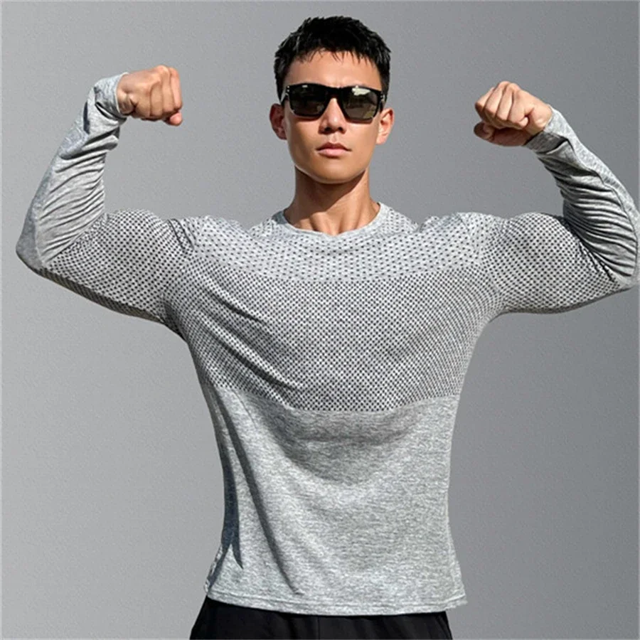Men's Sport Long Sleeve Tops Quick Dry Fitness T-shirts Bodybuilding Gym Tees Casual Skinny Elastic Breathability men Sportswear