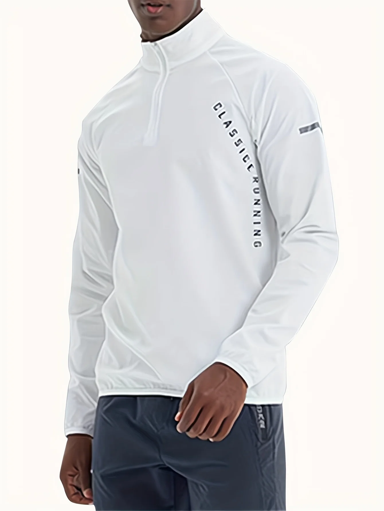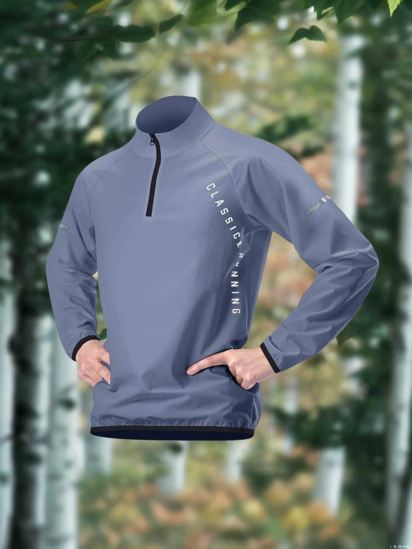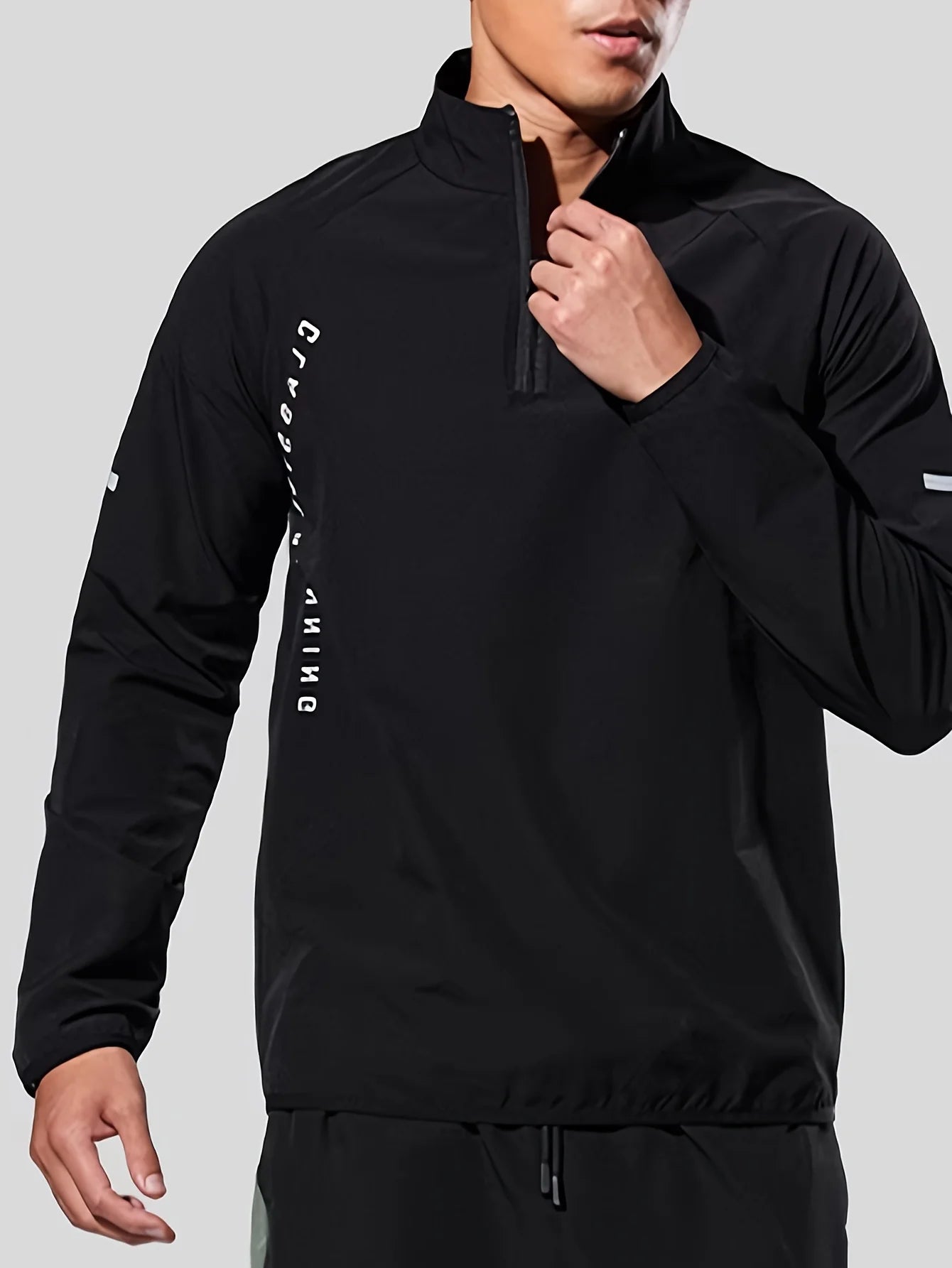 Men's sports long sleeved half zip top, quick drying running T-shirt, sports training jacket, breathable elastic fabric, mo