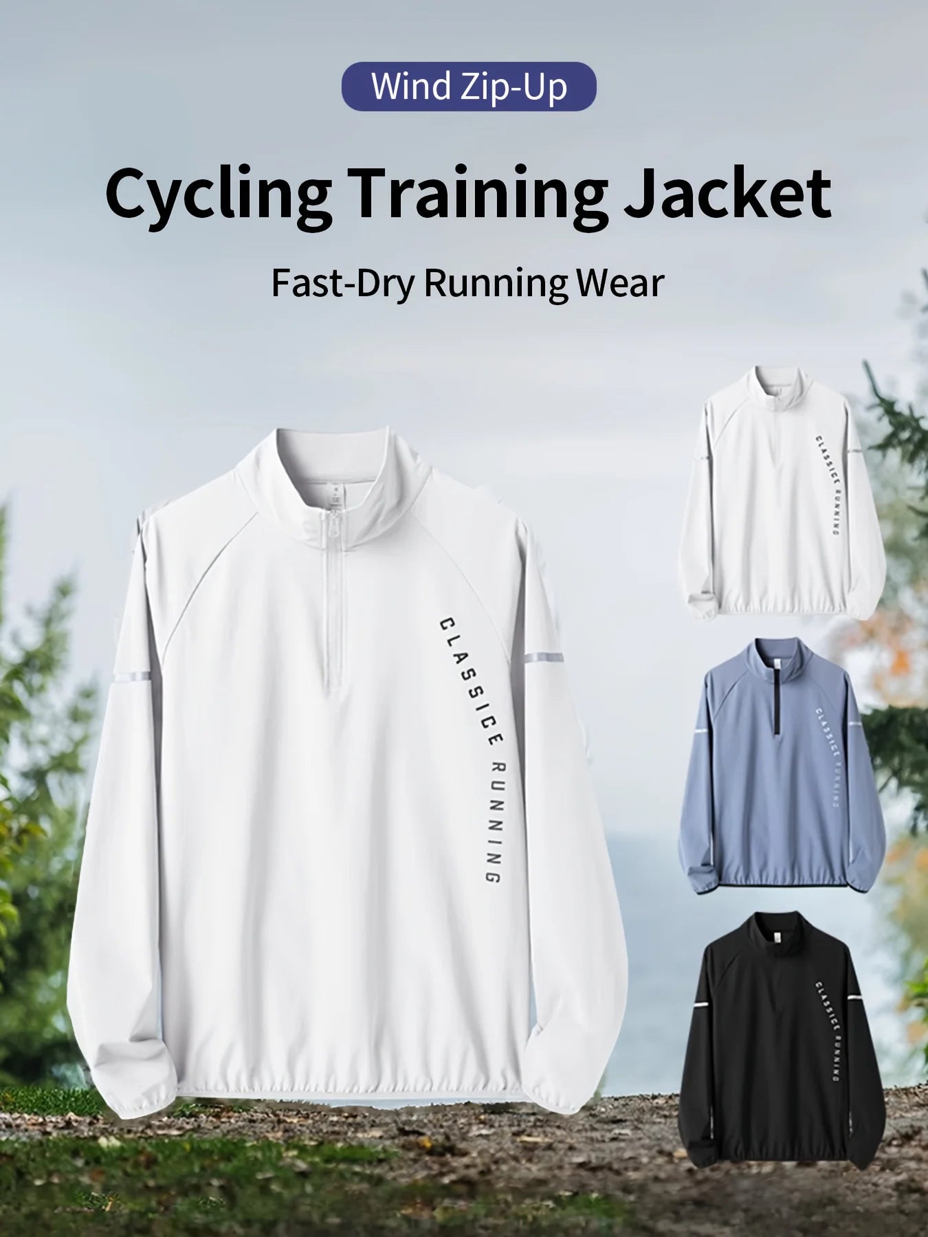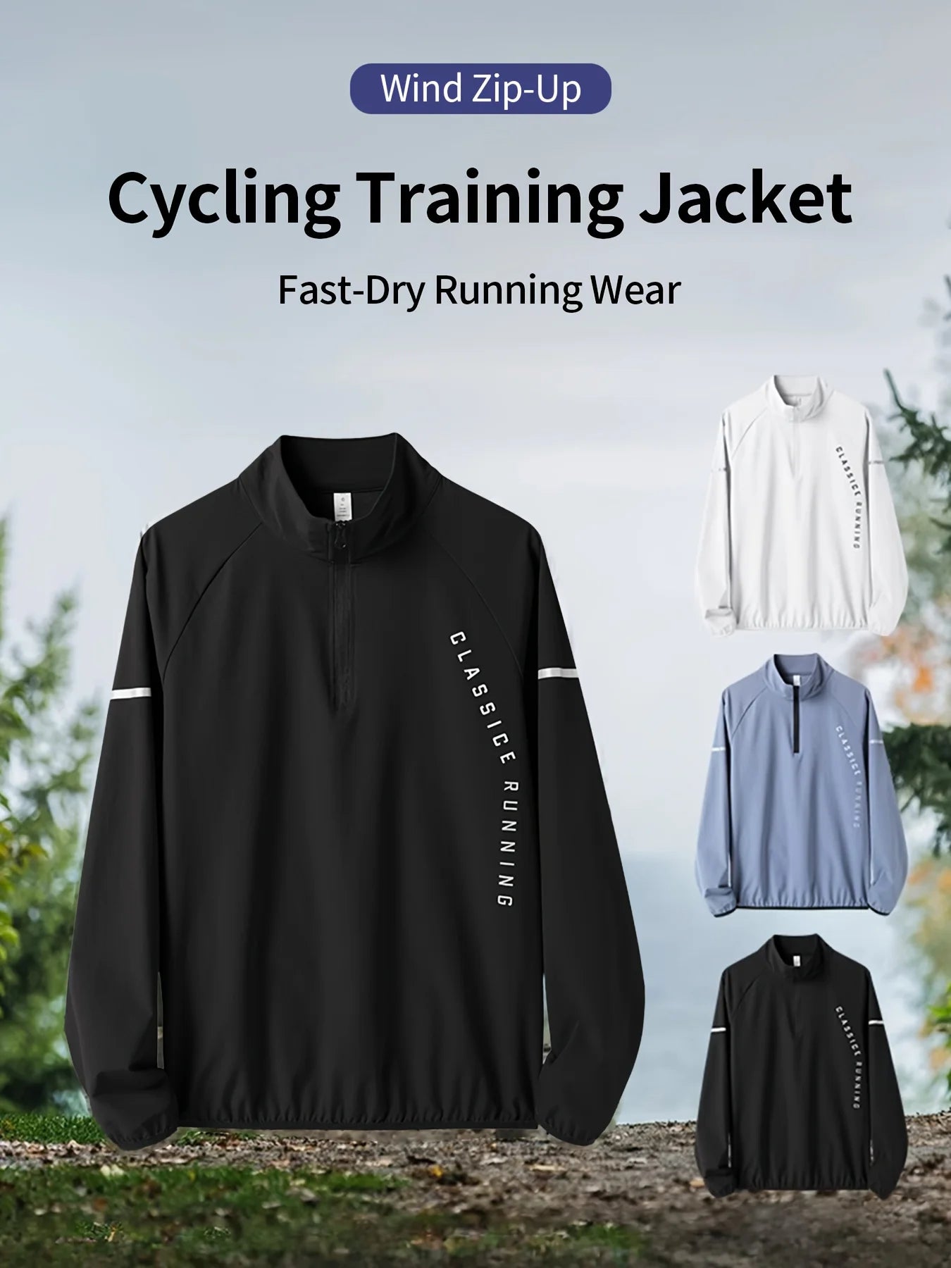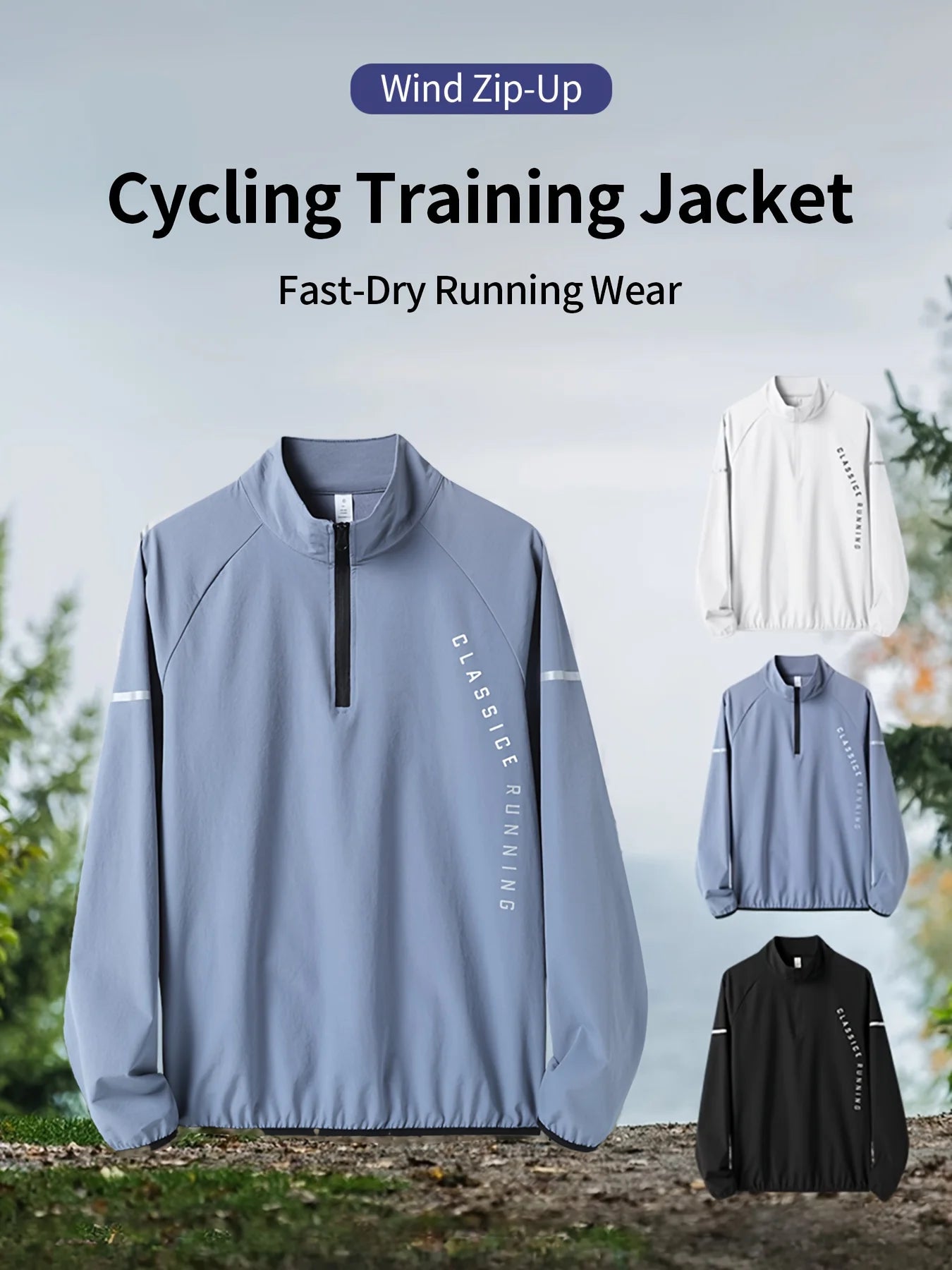 Men's sports long sleeved half zip top, quick drying running T-shirt, sports training jacket, breathable elastic fabric, mo