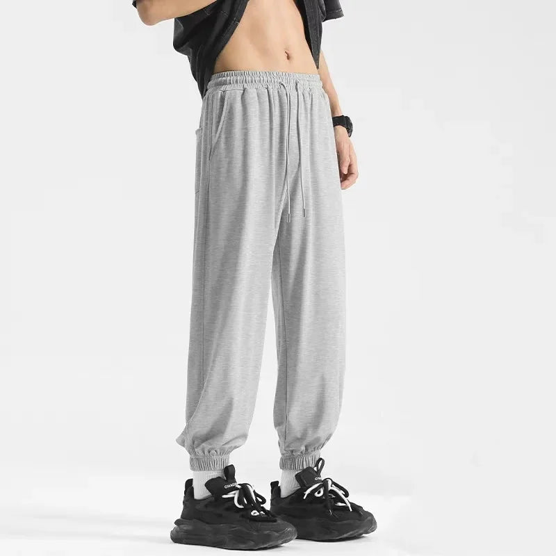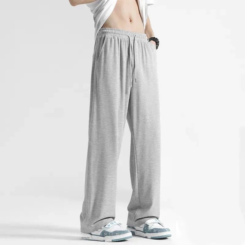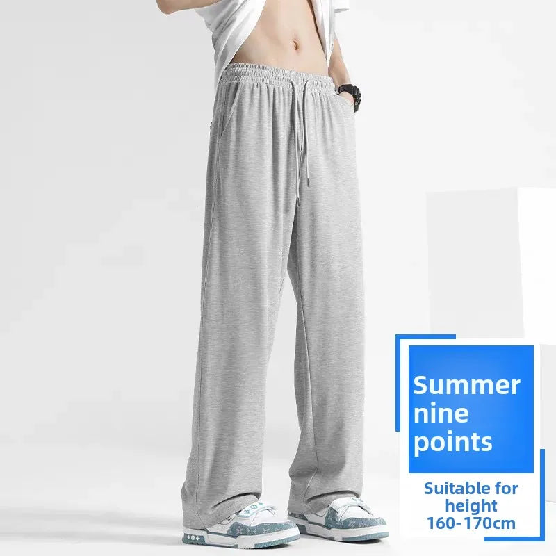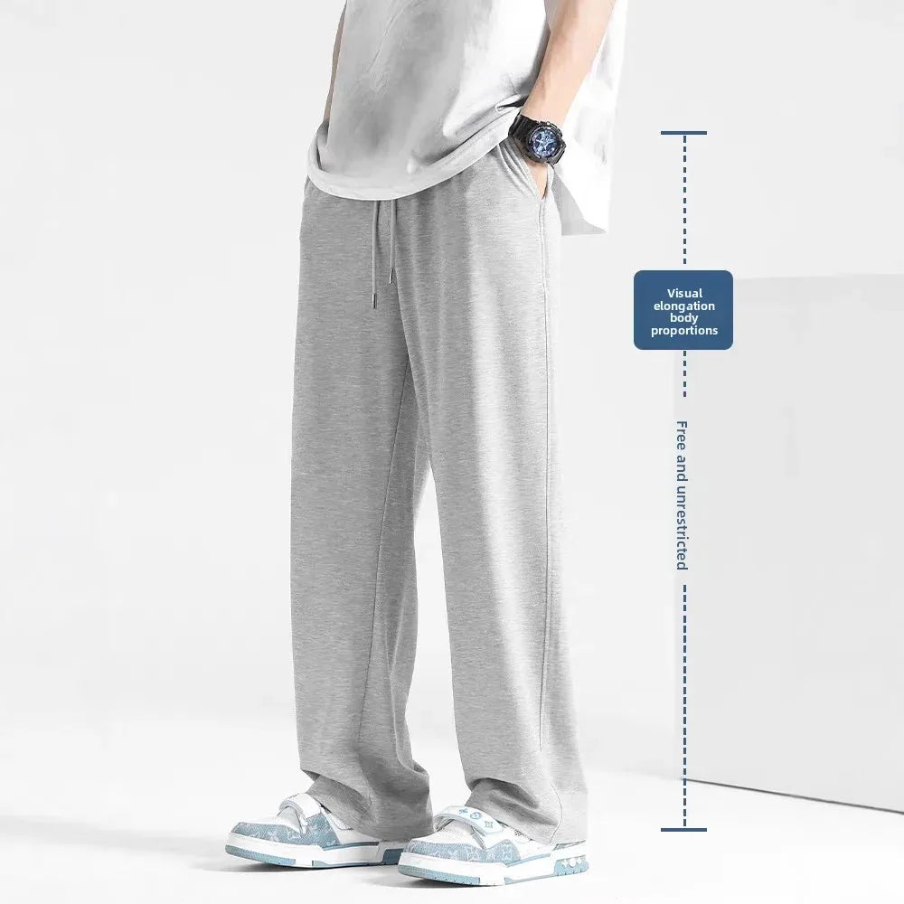 Men's Summer Thin Straight Leg Sport Pants Drapey Casual Grey Sweatpants Wide Leg Men's Loose Fit Comfortable Trousers
