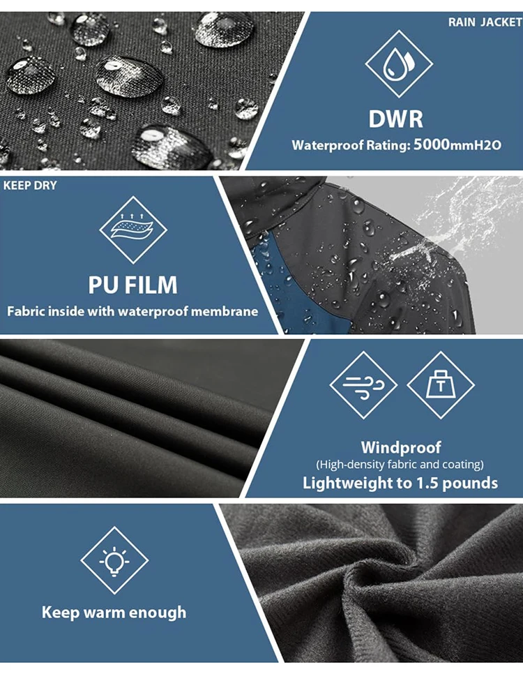 WATER RESISTANT: The men's lightweight jacket is made of 5000mm waterproof fabric, and all the zipper pockets are waterproof-designed, which is suitable for rainy or misty weather, keep you dry and comfortable throughout the day.