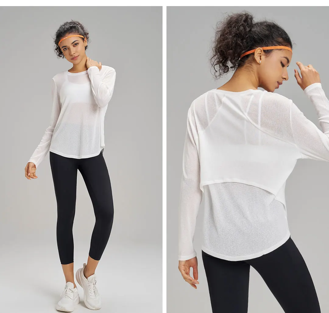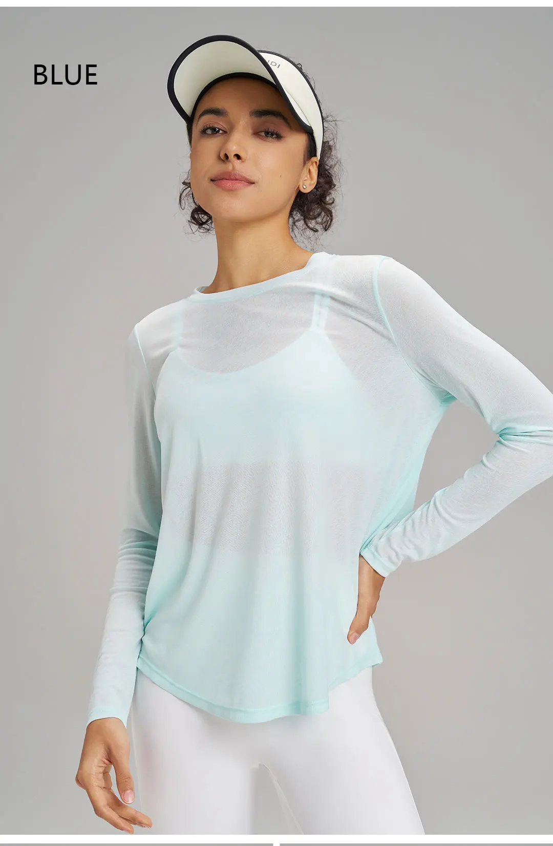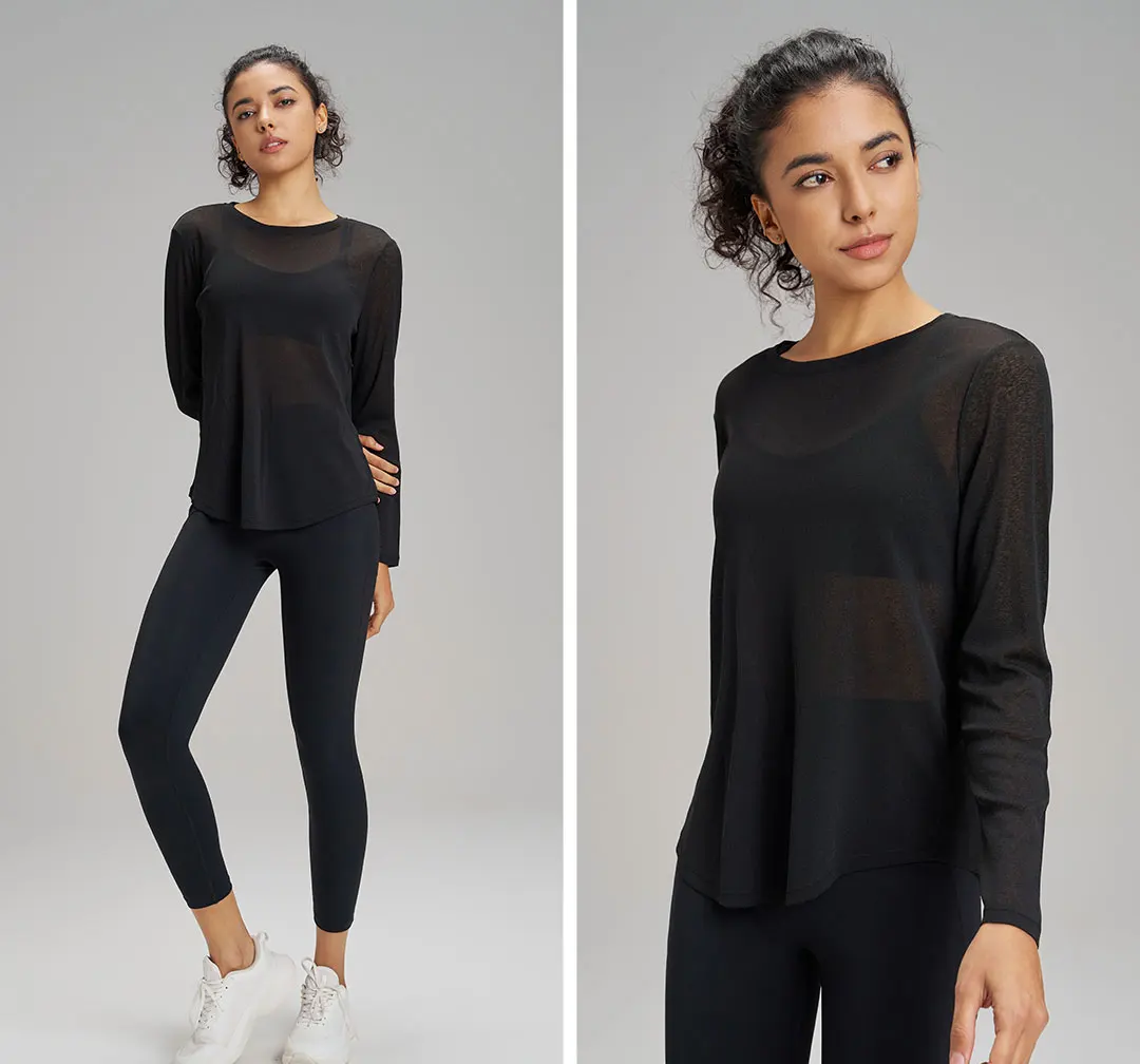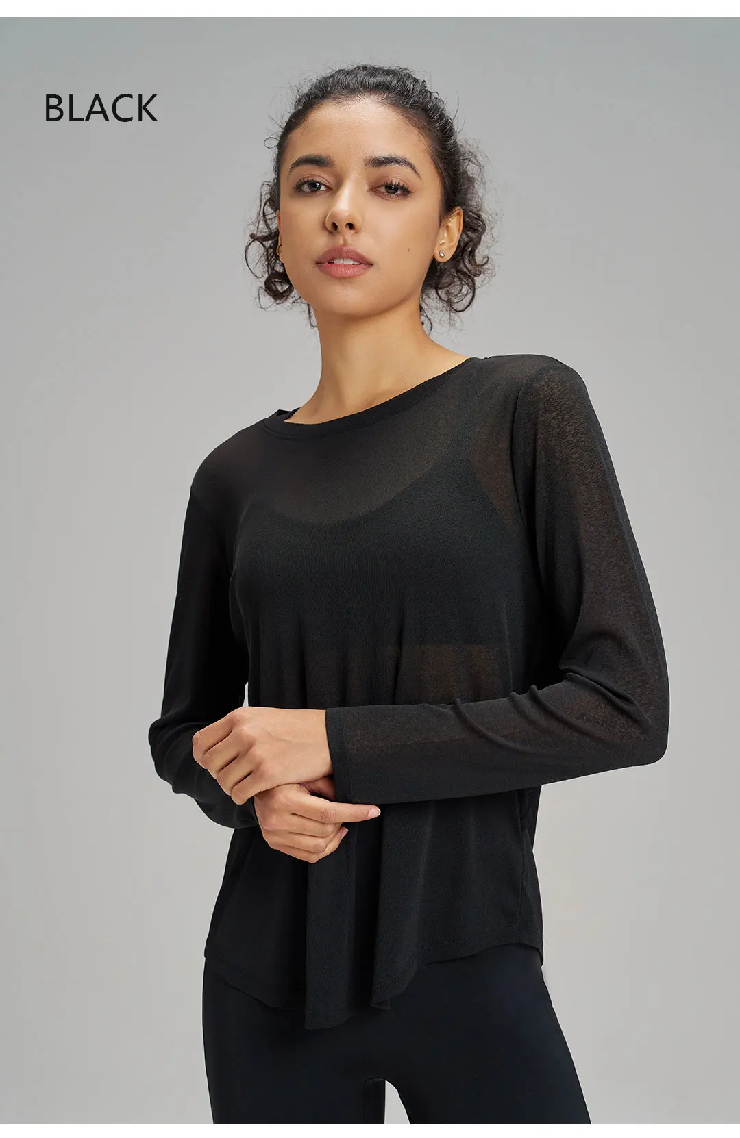 Mesh Sports Coverall Long Sleeve Quick Dry T-Shirt Loose Fitness Apparel Breathable Plus Size Yoga Tops Women