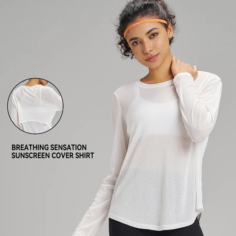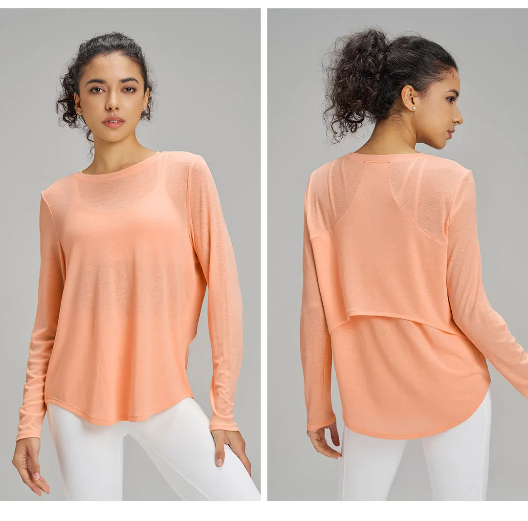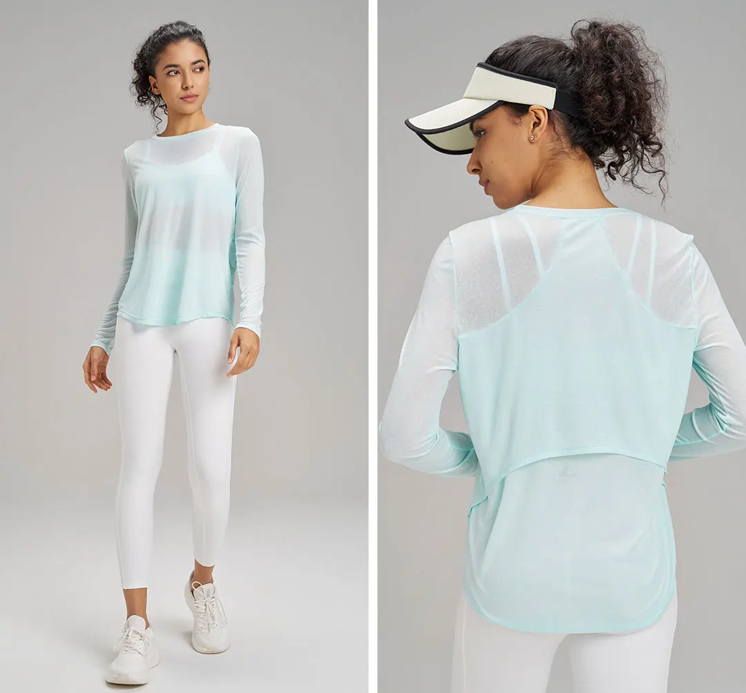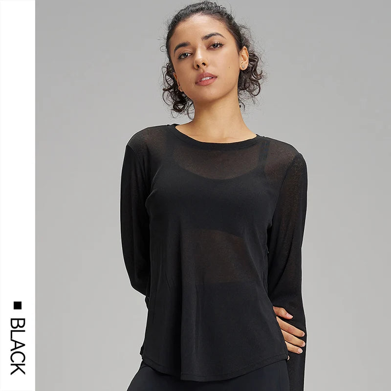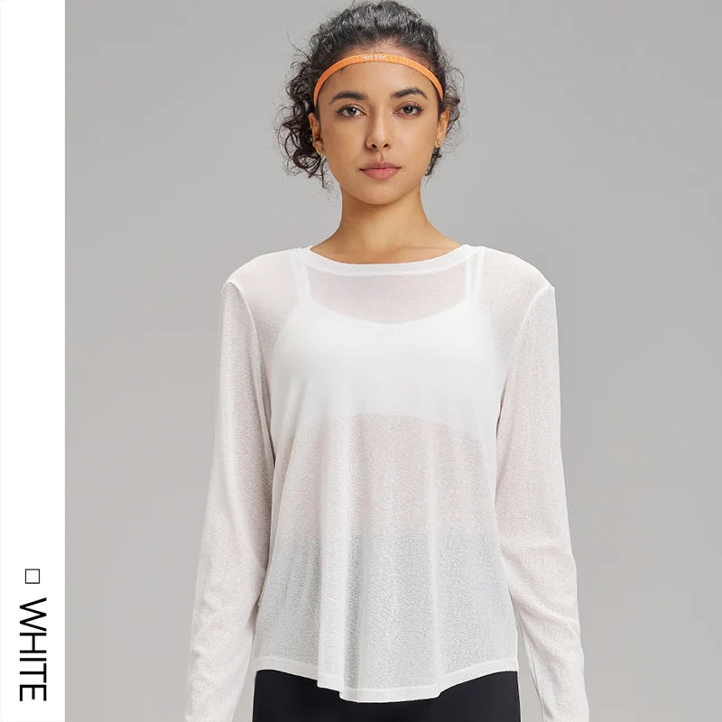 Mesh Sports Coverall Long Sleeve Quick Dry T-Shirt Loose Fitness Apparel Breathable Plus Size Yoga Tops Women