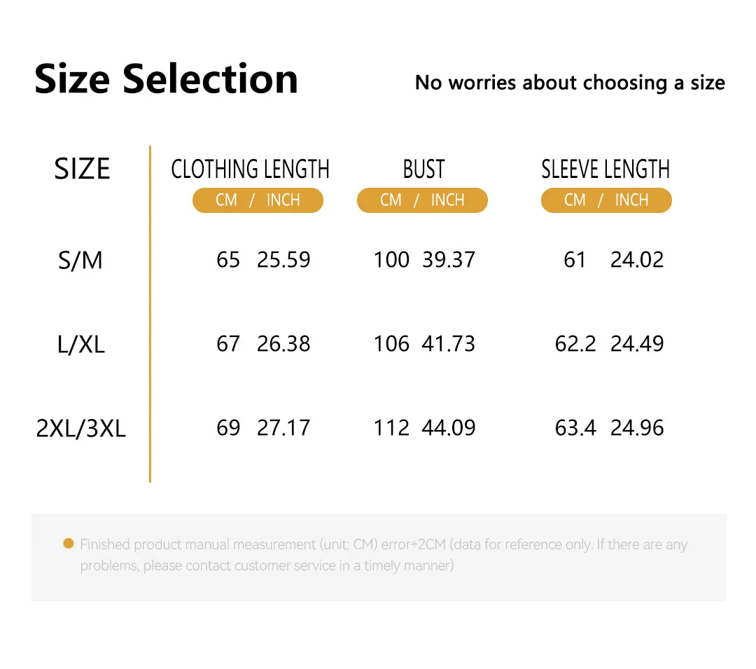size_info: {"sizeInfoList":[{"length":{"cm":"100","inch":"39.37"},"size":"S/M","vid":-1},{"length":{"cm":"106","inch":"41.73"},"size":"L/XL","vid":-2},{"length":{"cm":"112","inch":"44.09"},"size":"2XL/3XL","vid":-3}]}