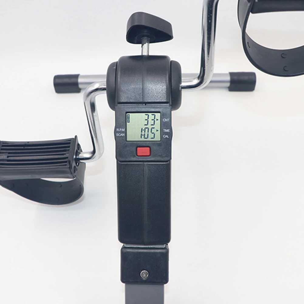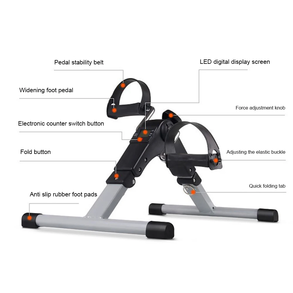 Folding Pedal Exerciser with LCD Display Leg Muscle Training Bicycle Adjustable Resistance Multifunctional for Arms Legs Workout Specification: Origin: Mainland China Type of sports: Strength Training Main Material: Steel Pipe Size: 480.00x360.00x233.00mm/18.9x14.17x9.17inch Gross Weight: 2600g Display Power Supply Battery: Button Battery Installation: In order to express the ease of packaging, you receive the product is folded, you have to use your hands to break open the two feet, the holes can be aligned. Folding Method: when folded with a fingertip over the pull ring to pull out the pins, the two feet of the device by hand to close in, you can quickly fold.