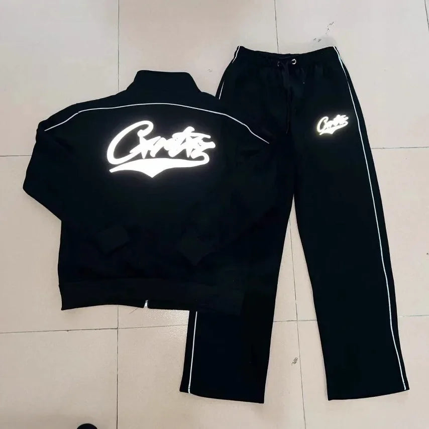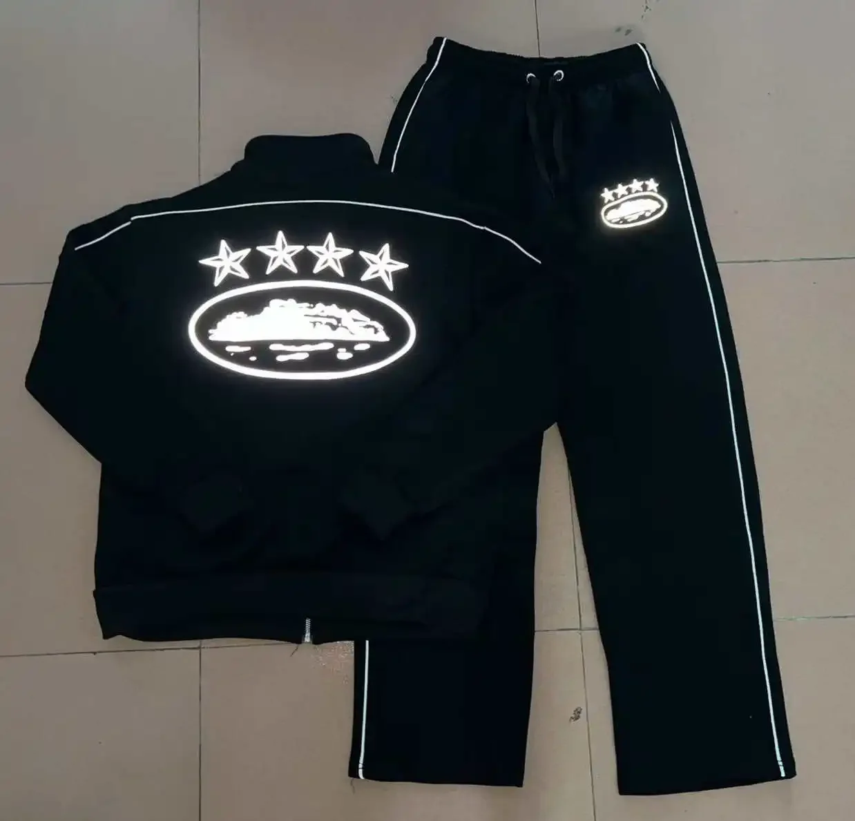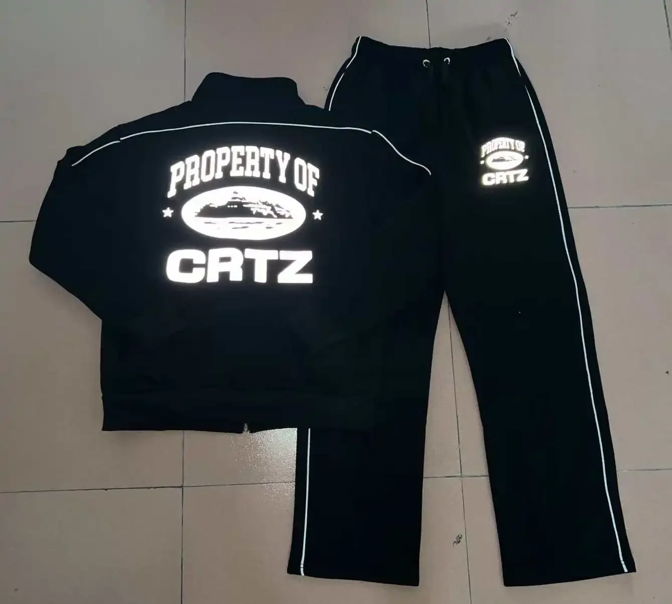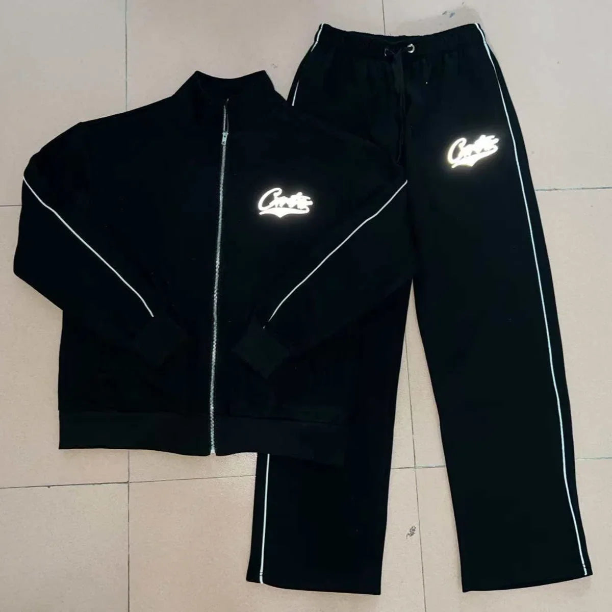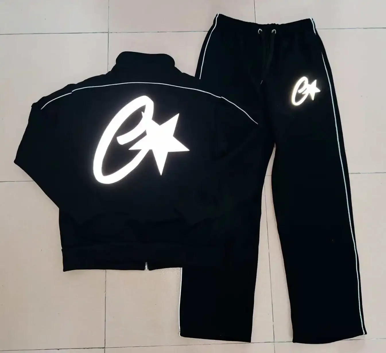 New Autumn Winter Reflective Letter Series Devil Island Zipper Hoodie Pants Men's Clothing Set High Visibility Sports Jacket
