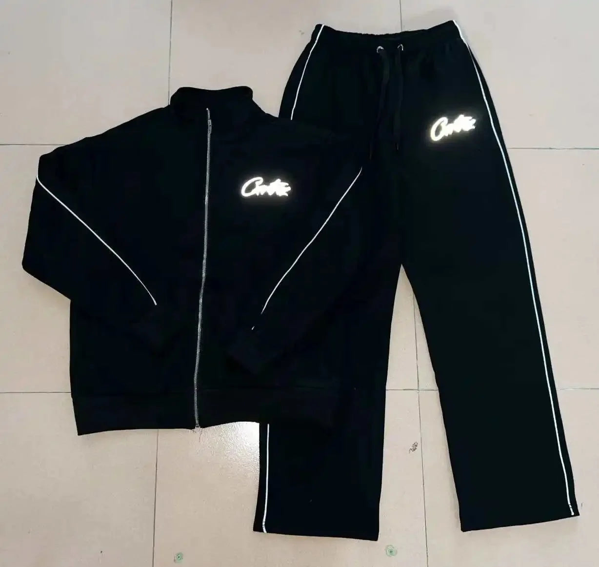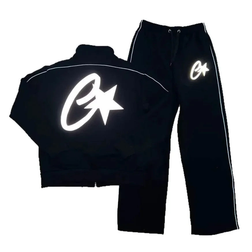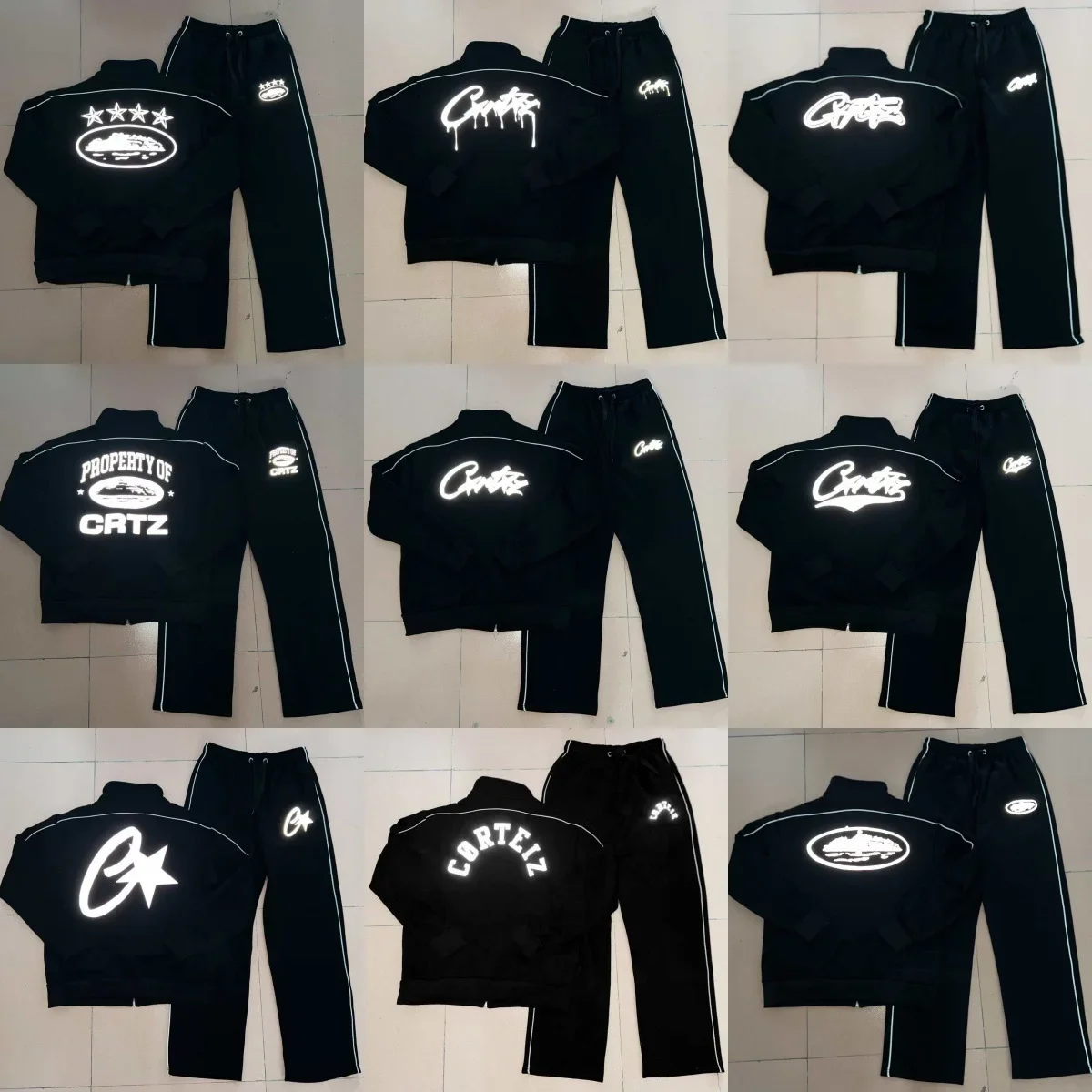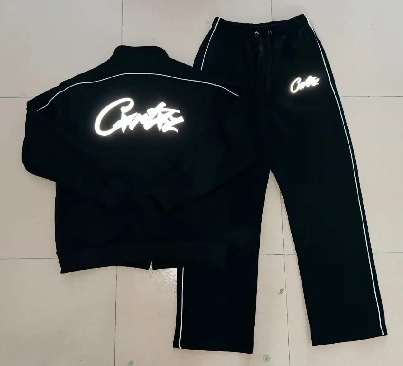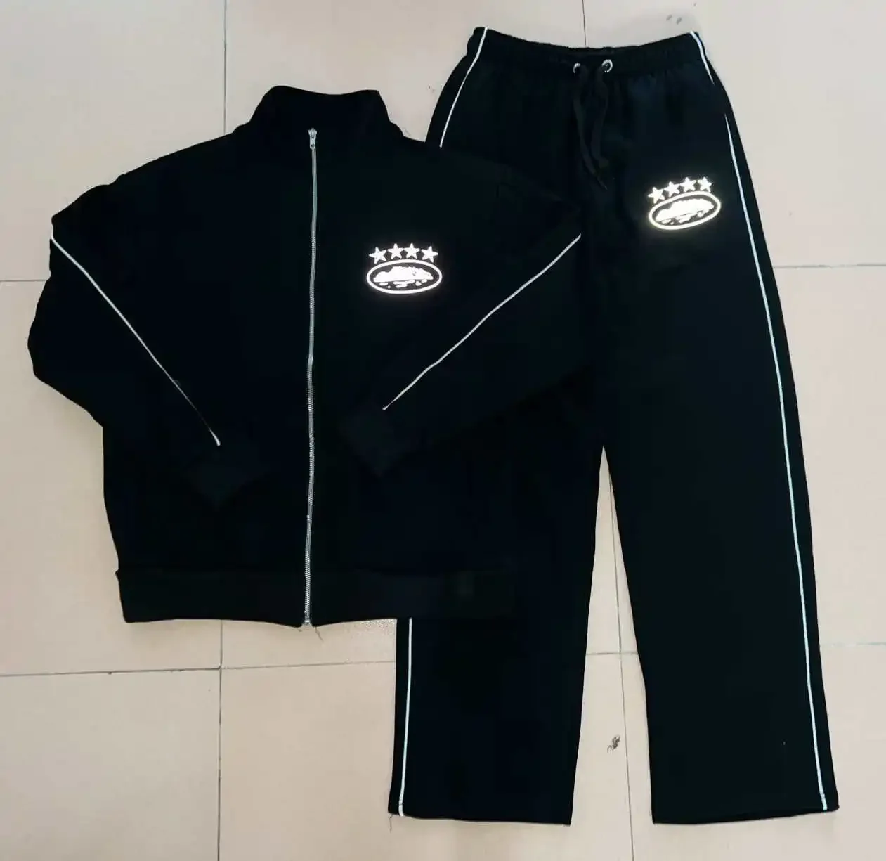 New Autumn Winter Reflective Letter Series Devil Island Zipper Hoodie Pants Men's Clothing Set High Visibility Sports Jacket