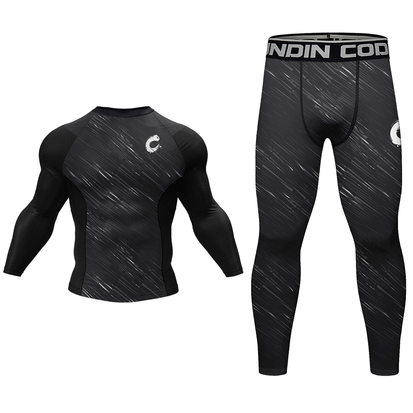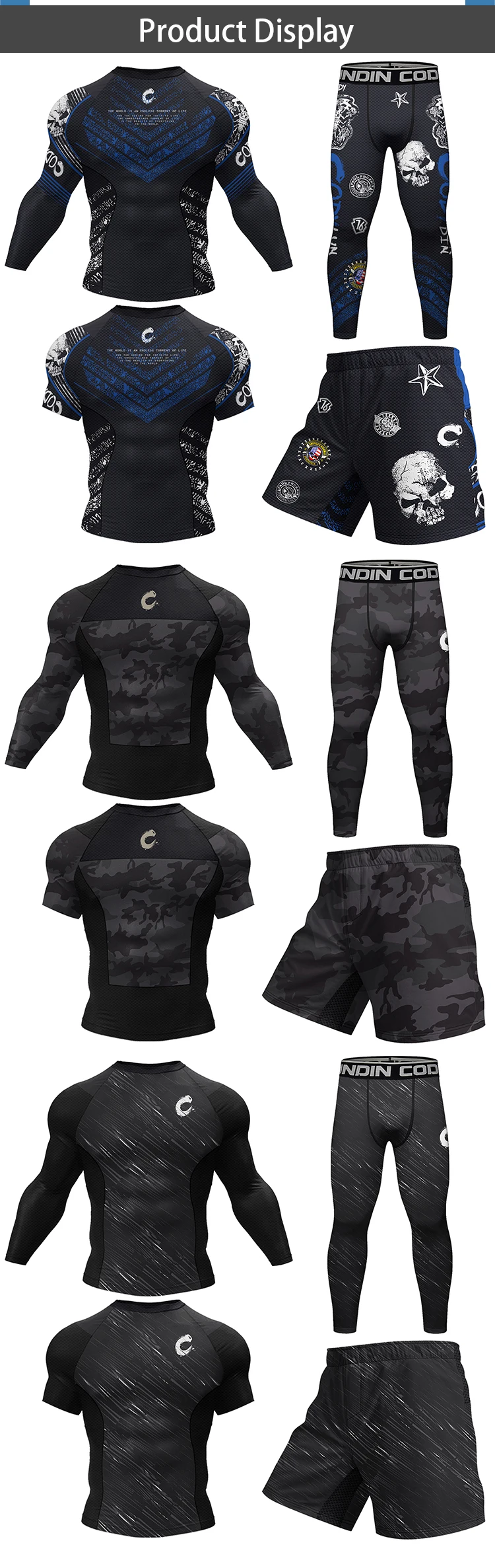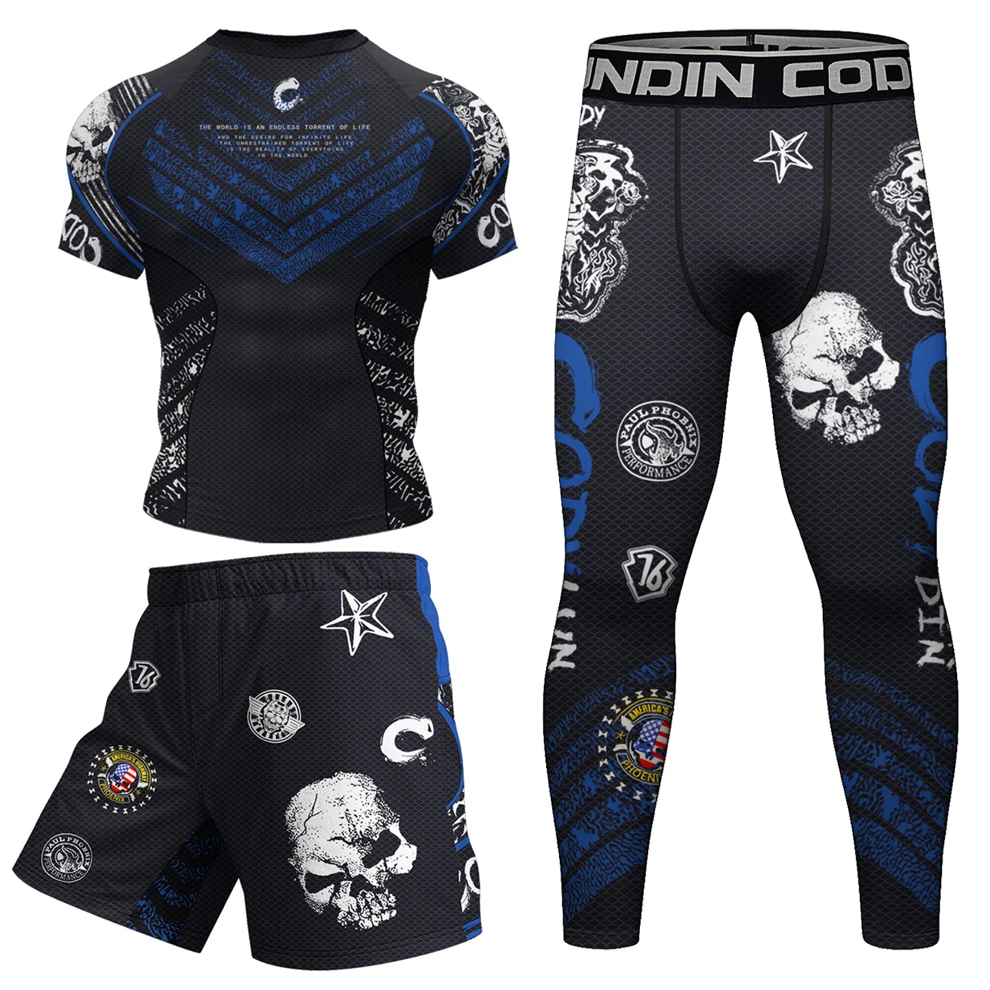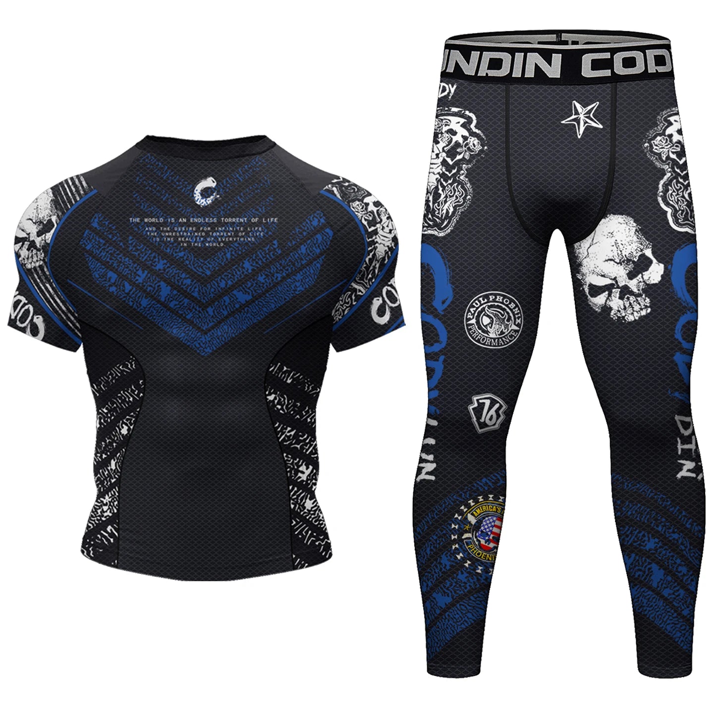 New BJJ Rash Guard Tight Exercise Jogging T-Shirts+Pants Sets Sport 3D Printing Jiu Jitsu Rashguard Compression Boxing Tracksuit