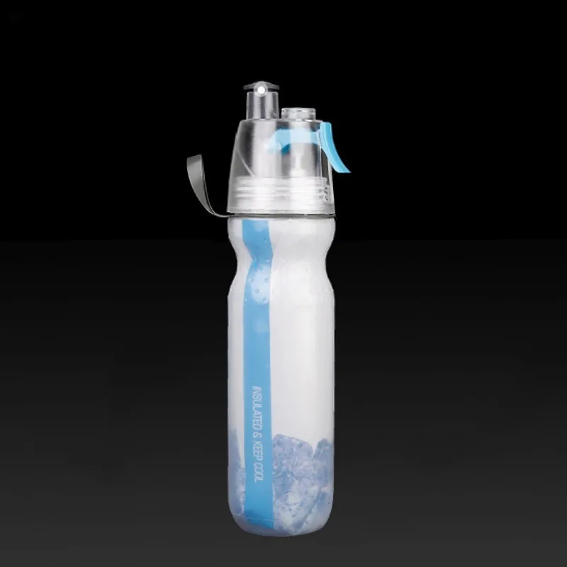 New Double-Layer Cold Preservation Function Spray Bottle 500ml Outdoor Sports Cycling Portable PE Large Capacity Water Bottle