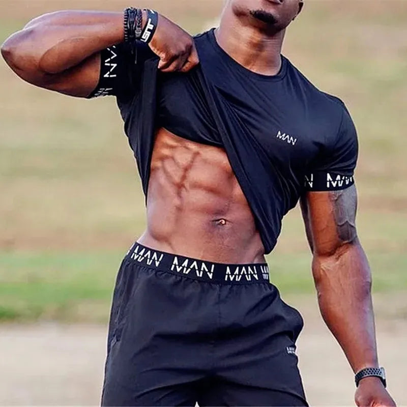 NEW round collar Shirt Men Short Sleeve Workout Gym T-Shirt Compression Running Fitness Tops Summer Tees men Training Clothing