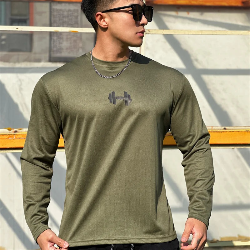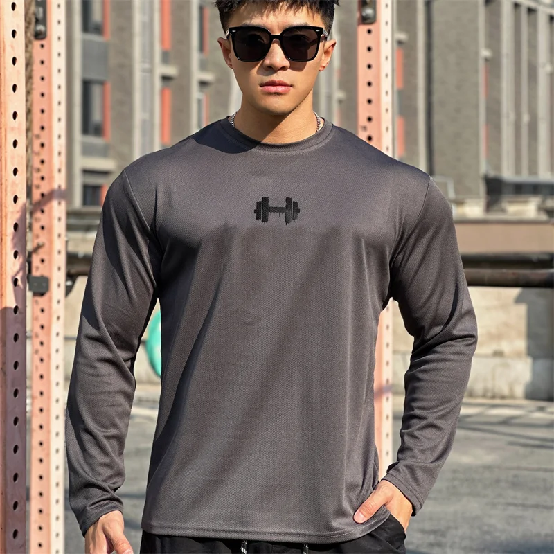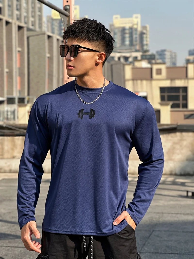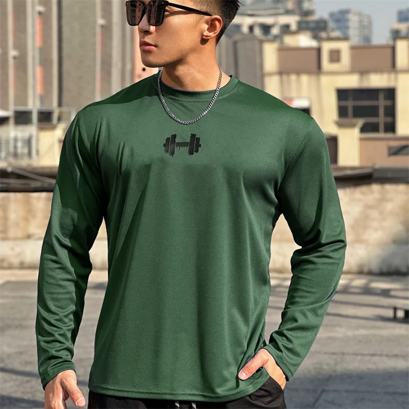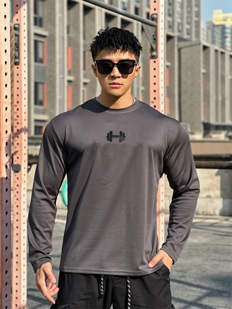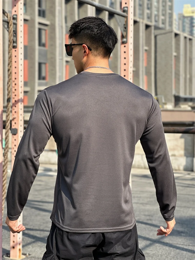 New Sport Pullover quick-drying Running Round Neck T-shirt Men Long Sleeves Mesh spring autumn Breathable T-shirt fitness top