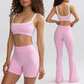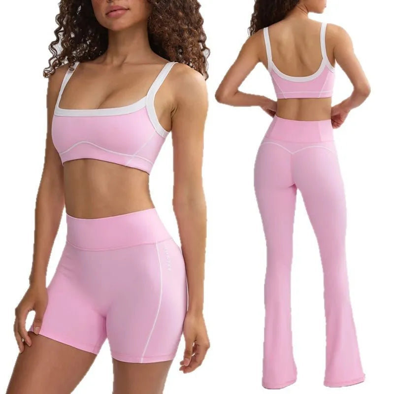 New Yoga Set Workout Clothes for Women Sports Bra Shorts Leggings Two-piece Set Outfits Pink Contrast Gym Set Tracksuit Women