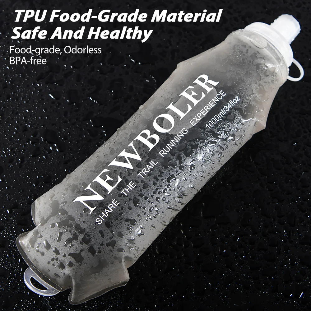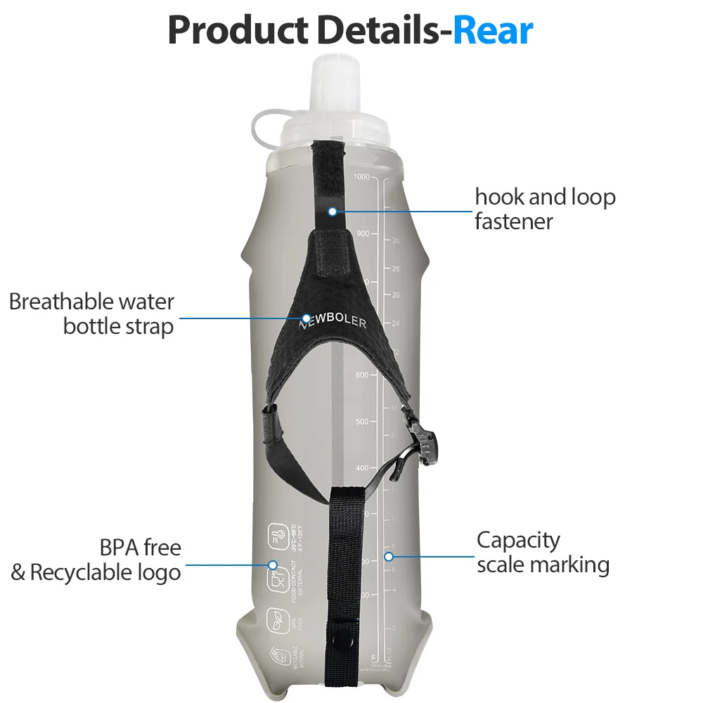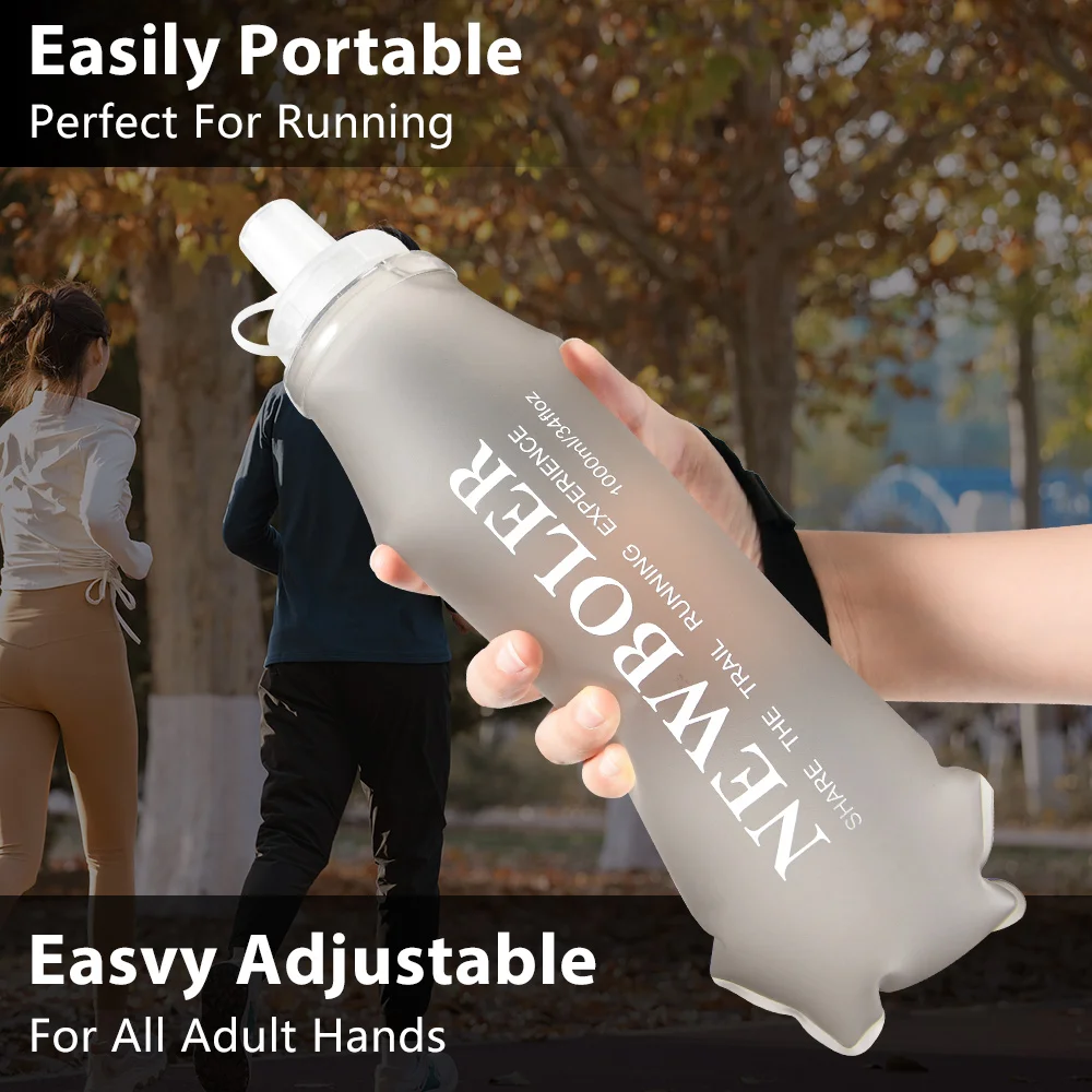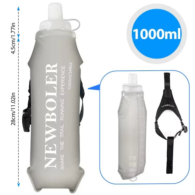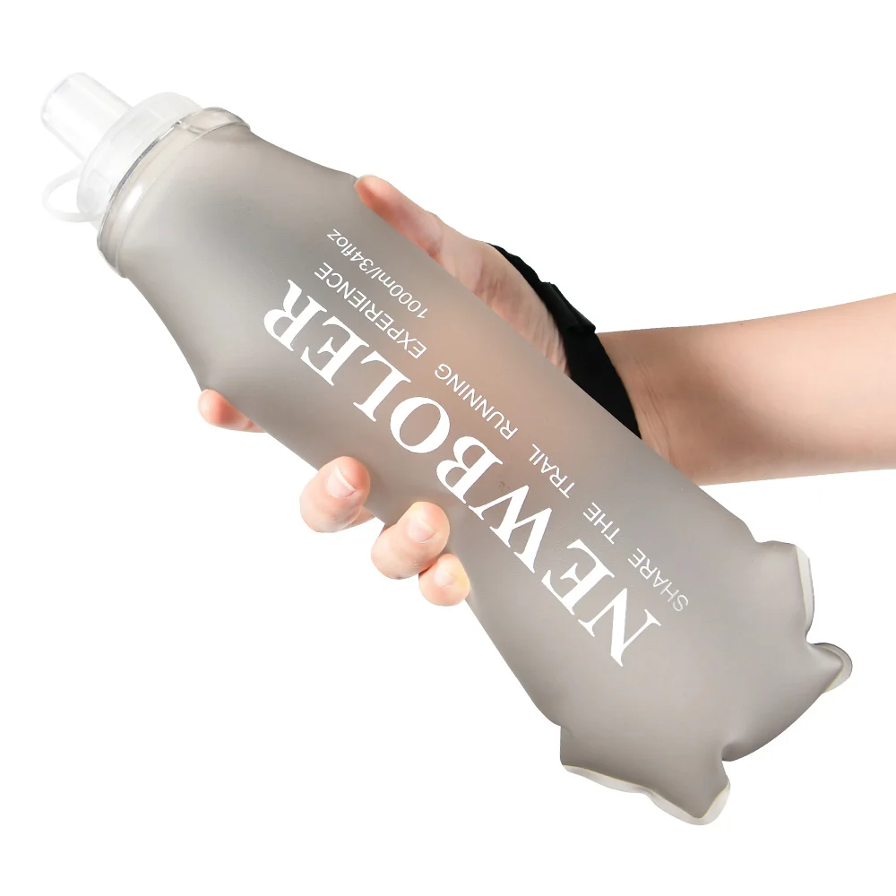 NEWBOLER TPU Soft Water Bottle 800/1000ml Ultra Lightweight Foldable Wristband Fixed Anti Slip Outdoor Running Soft Water Bottle