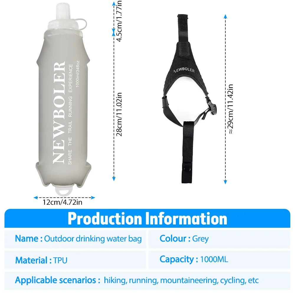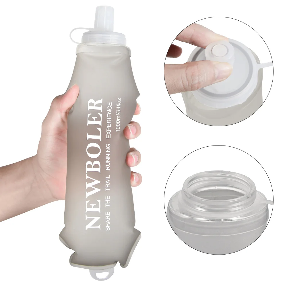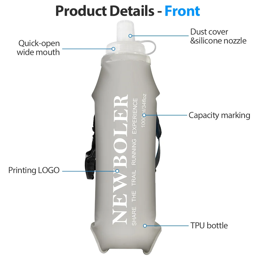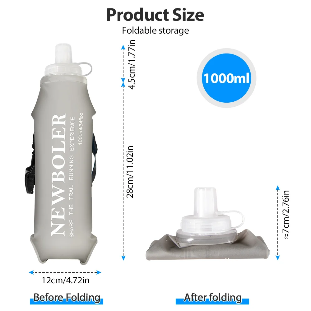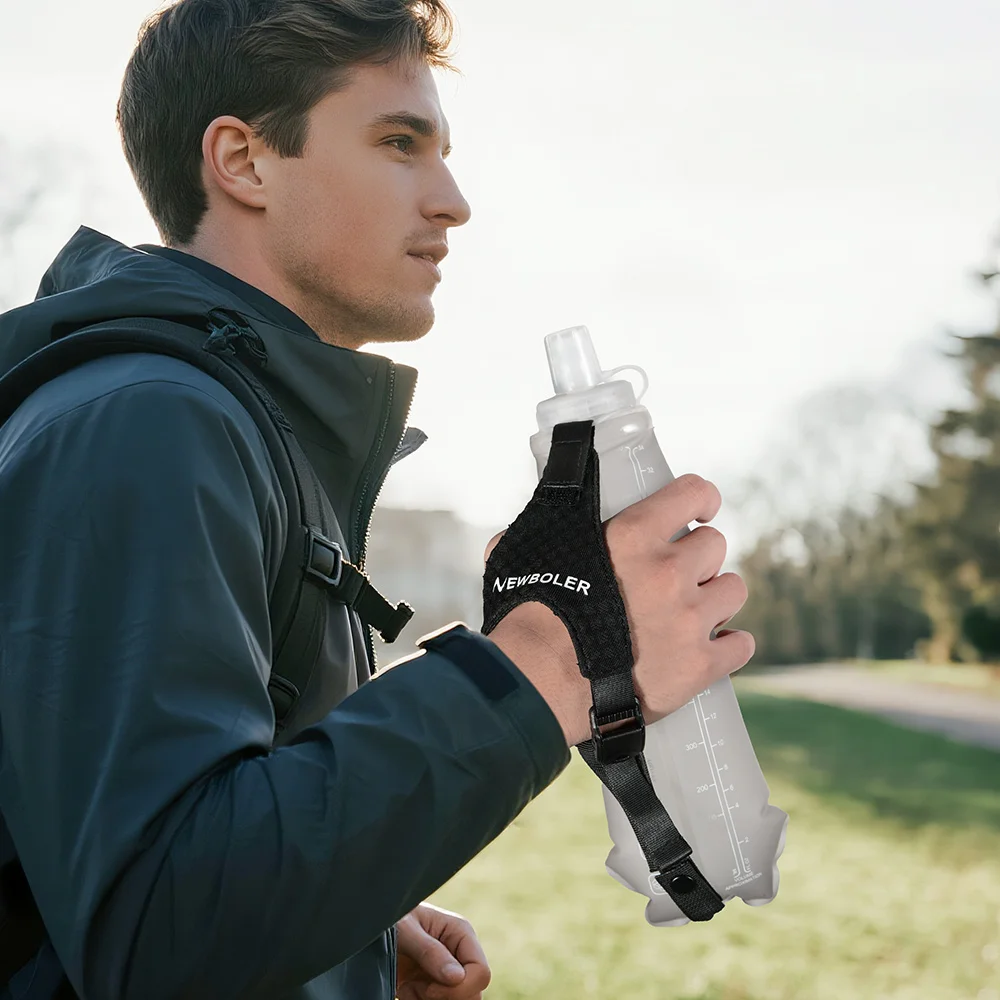 NEWBOLER TPU Soft Water Bottle 800/1000ml Ultra Lightweight Foldable Wristband Fixed Anti Slip Outdoor Running Soft Water Bottle