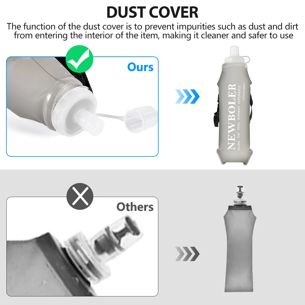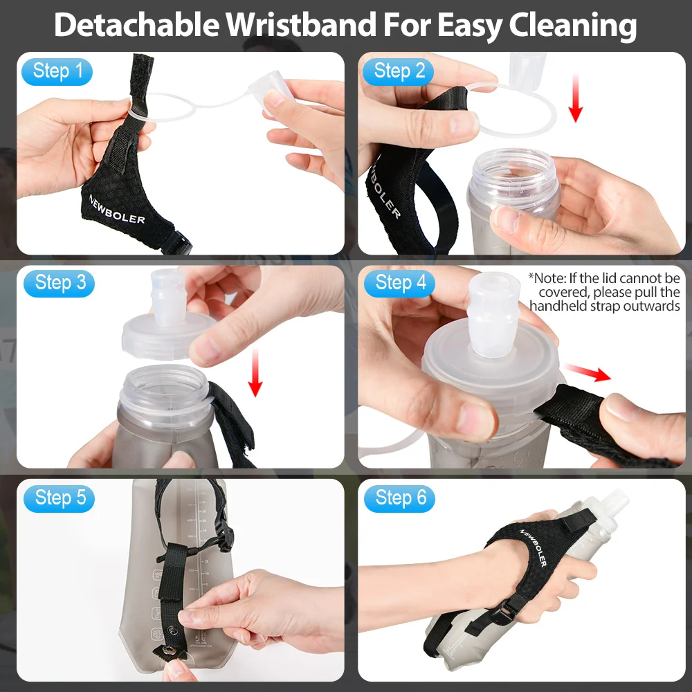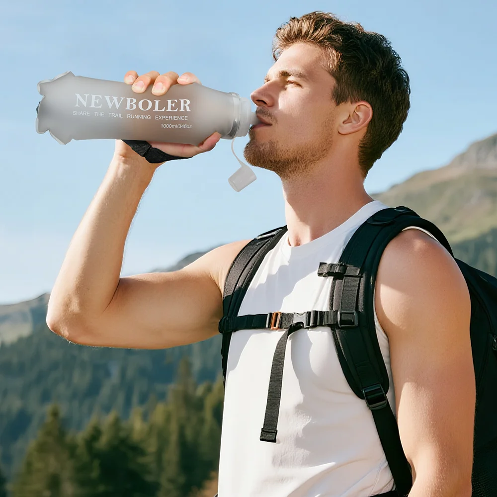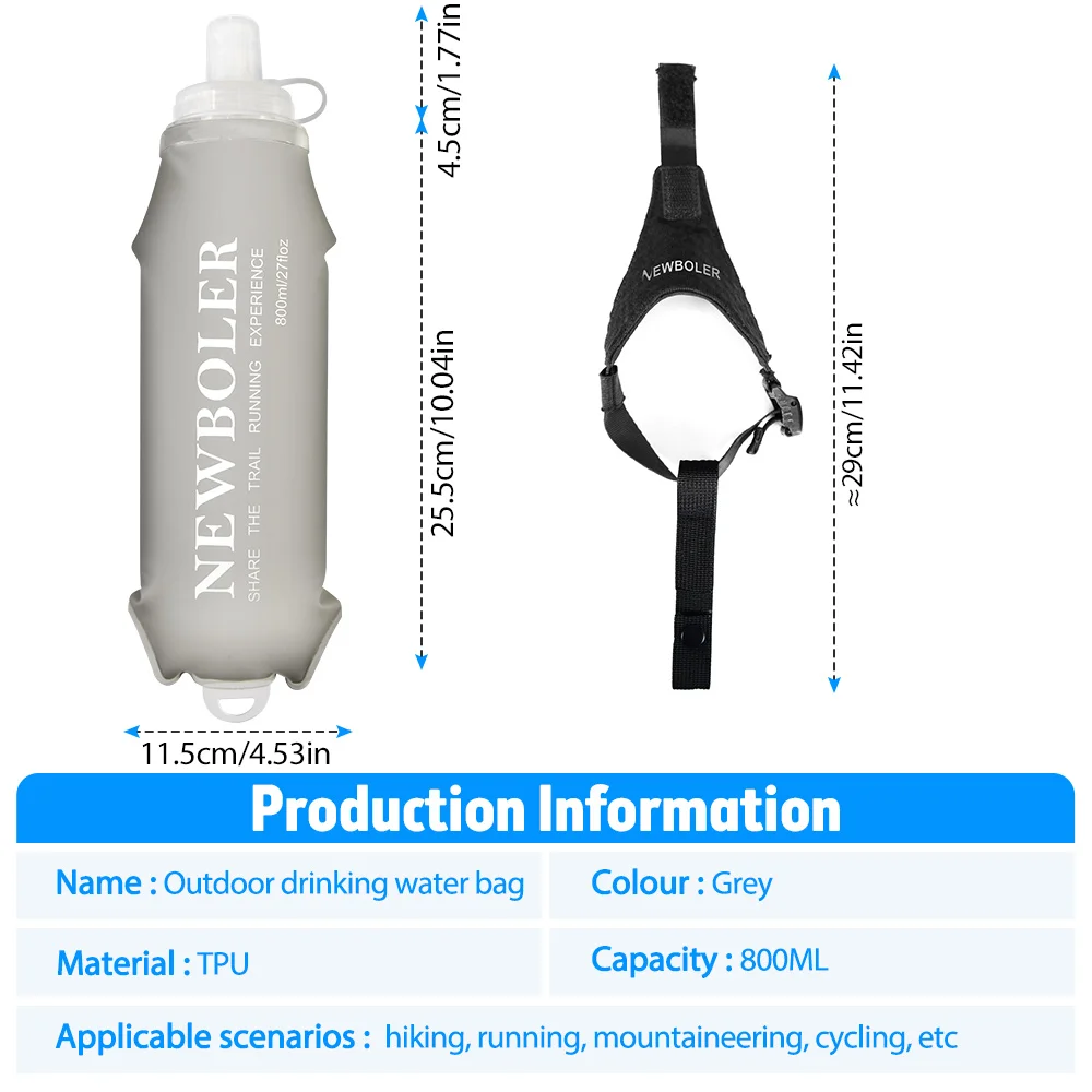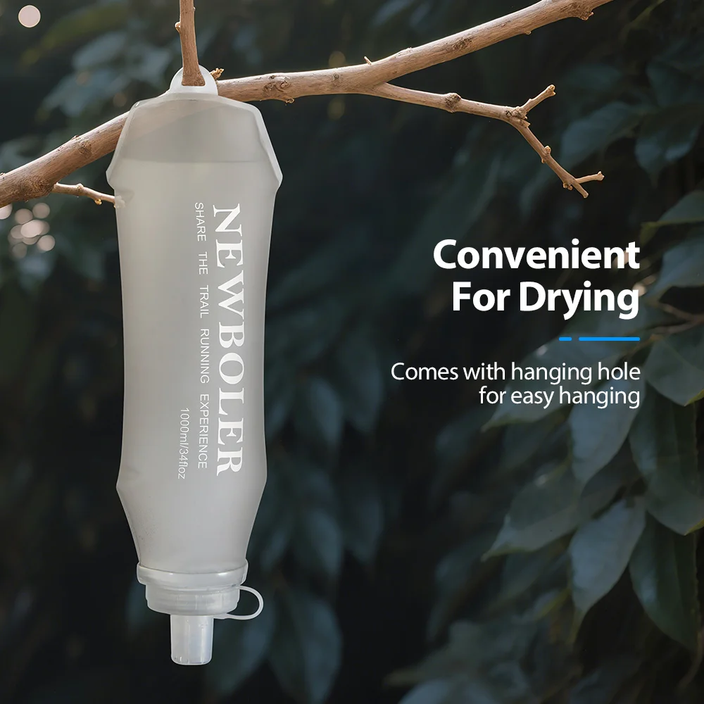 NEWBOLER TPU Soft Water Bottle 800/1000ml Ultra Lightweight Foldable Wristband Fixed Anti Slip Outdoor Running Soft Water Bottle
