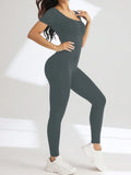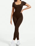 One piece seamless spandex U-neck short sleeved bodysuit with hip lifting, gym clothing, women's fitness jumpsuit