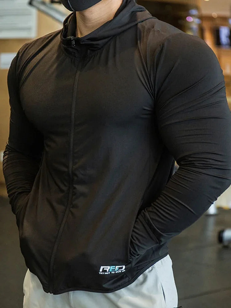 Outdoor sun protection suit, men's thin quick drying long sleeved fitness and sports jacket, professional running and training s