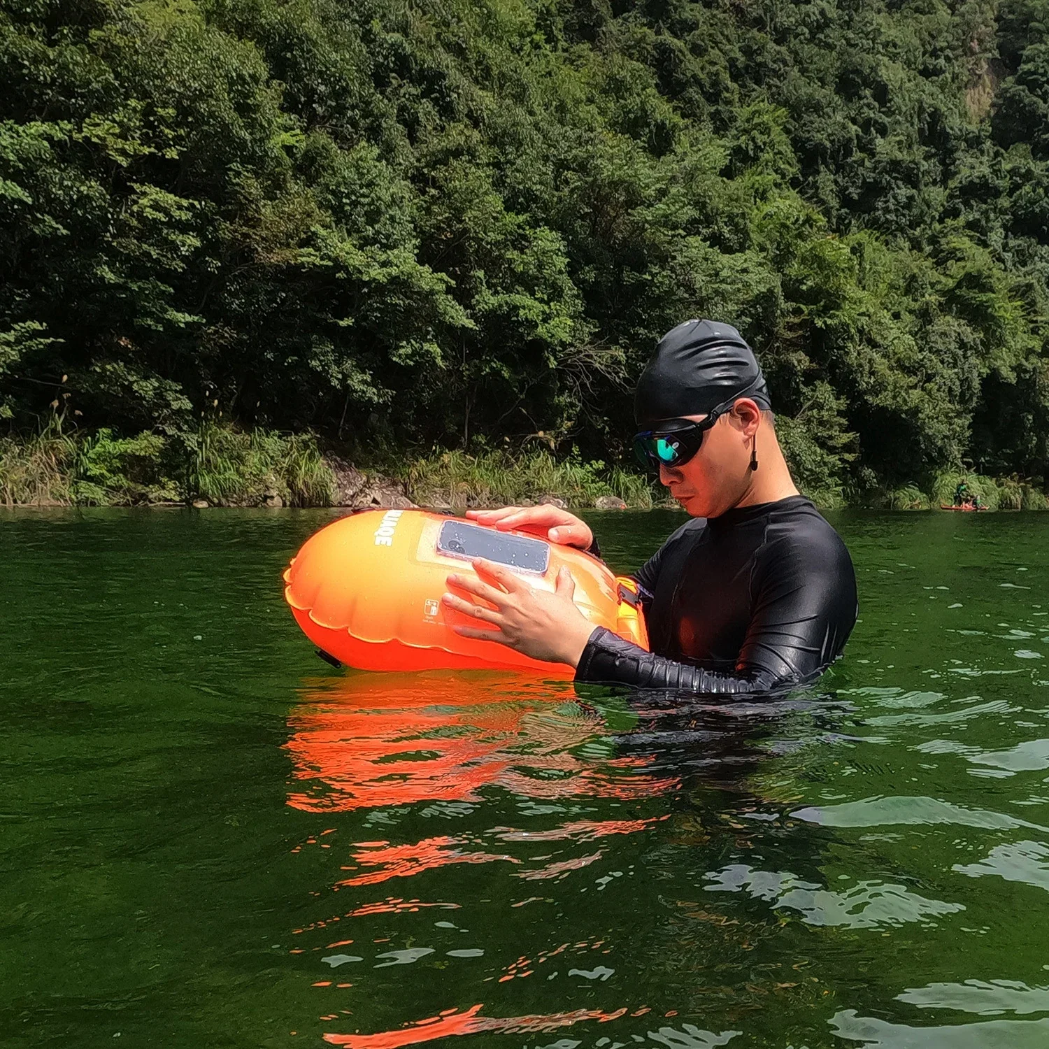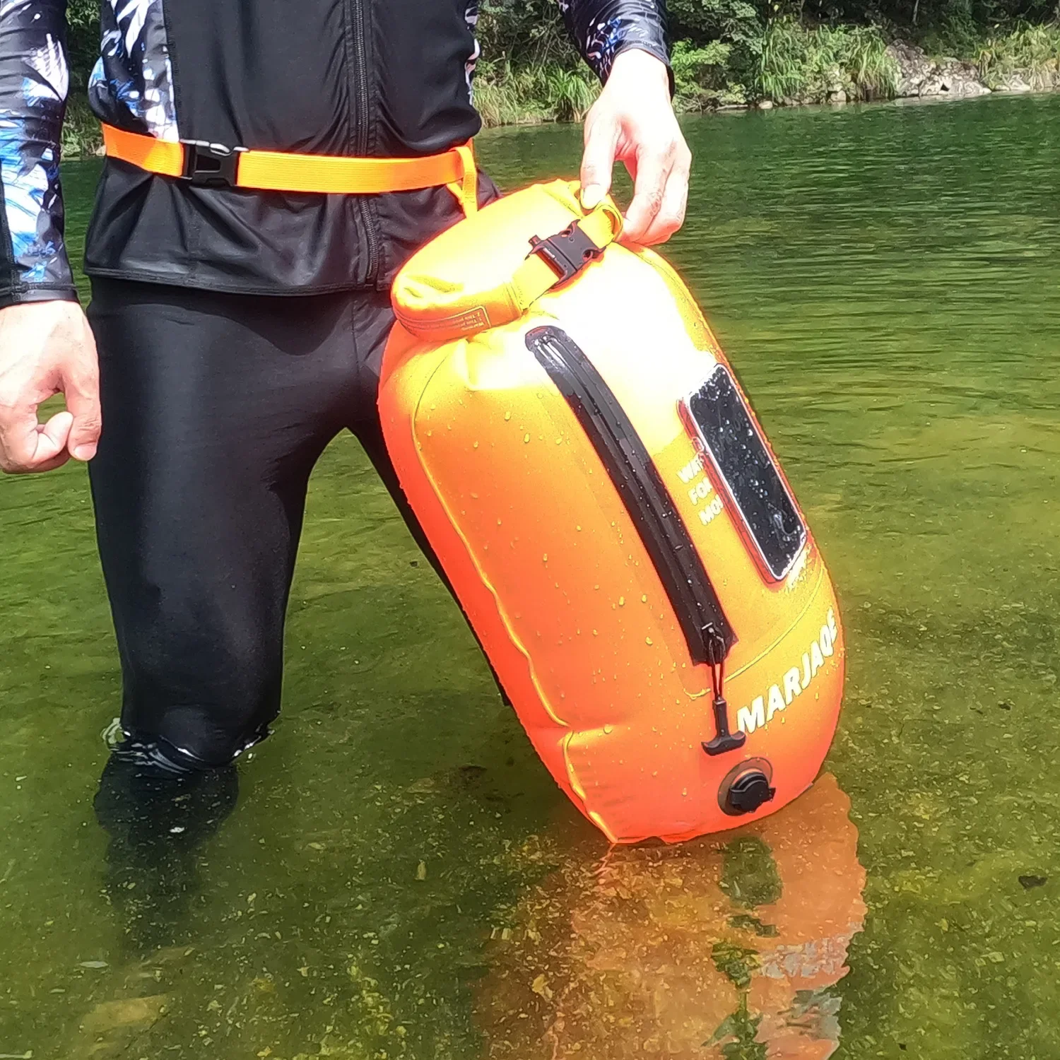 Outdoor Swimming Buoy Swim Float Dry Bag with Waist Belt Waterproof PVC Storage Bag Touch Screen for Water Sports