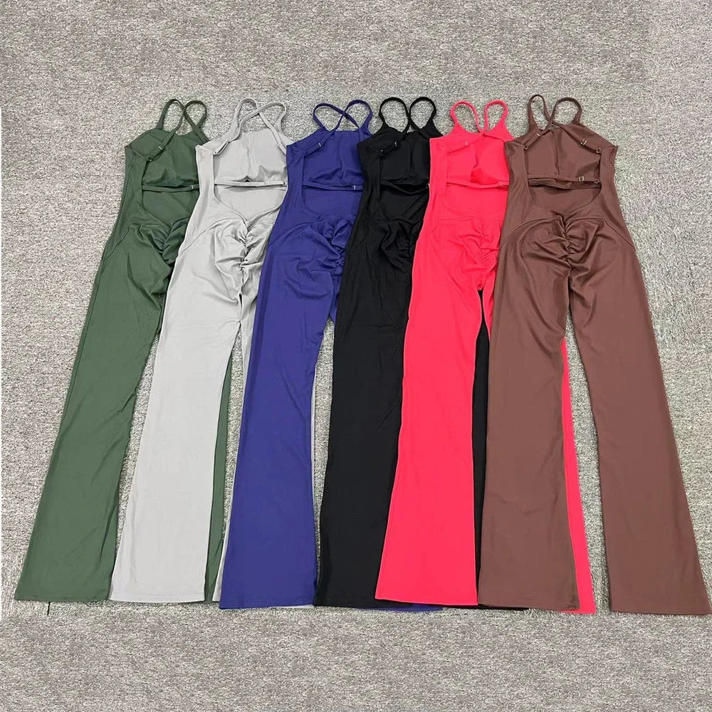 Pad Bunny Cross Backless Bodycon Yoga Set Jumpsuit Women One Piece Fitness Legging Gym Sport Active Wear Outfit Suits XP186