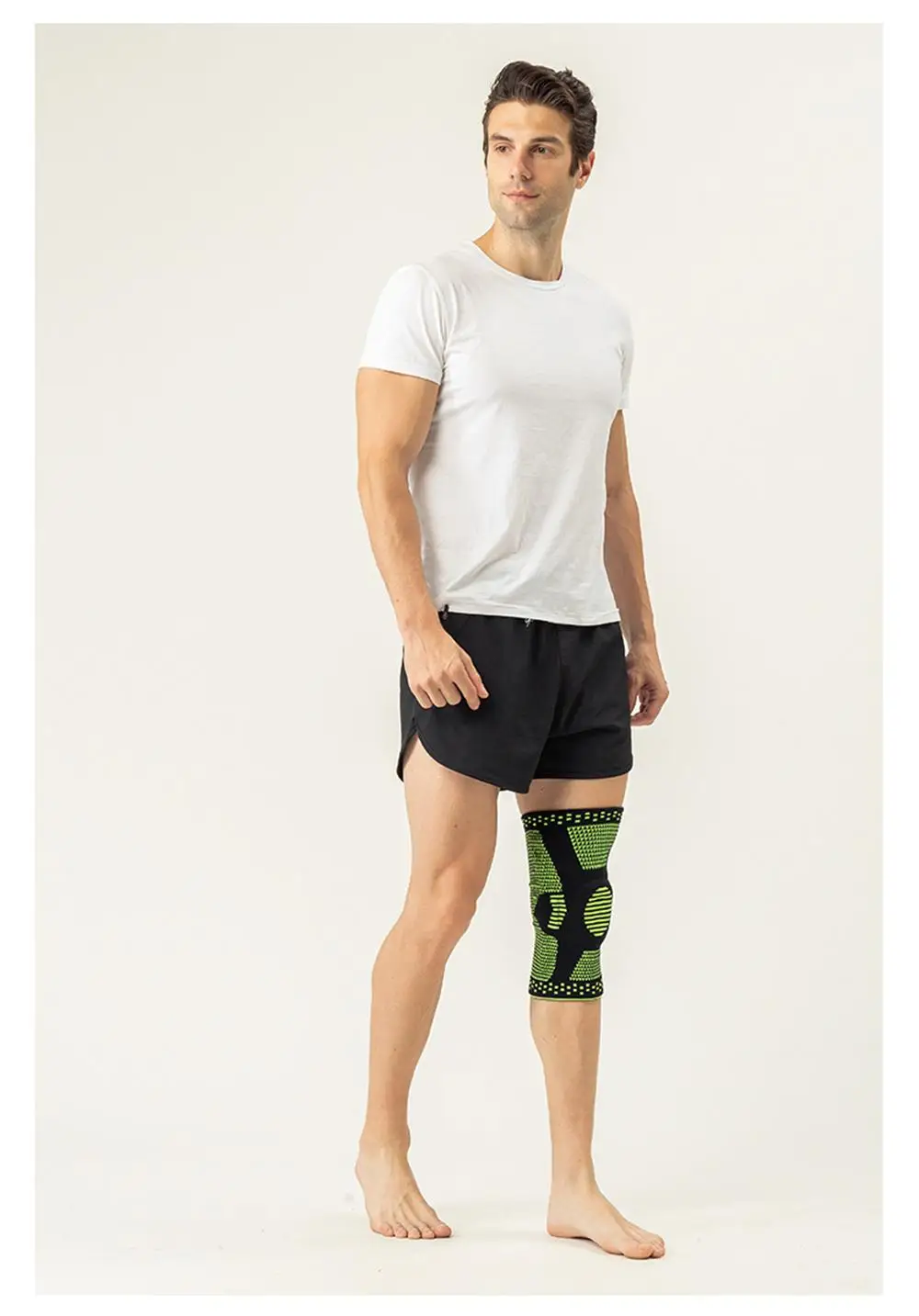 3. Double spring supports--Adopts soft elastic spiral-shaped supports, which prevents the knee brace from easily deformation, increase the auxiliary and shrink the foot joint, easy to take on and off