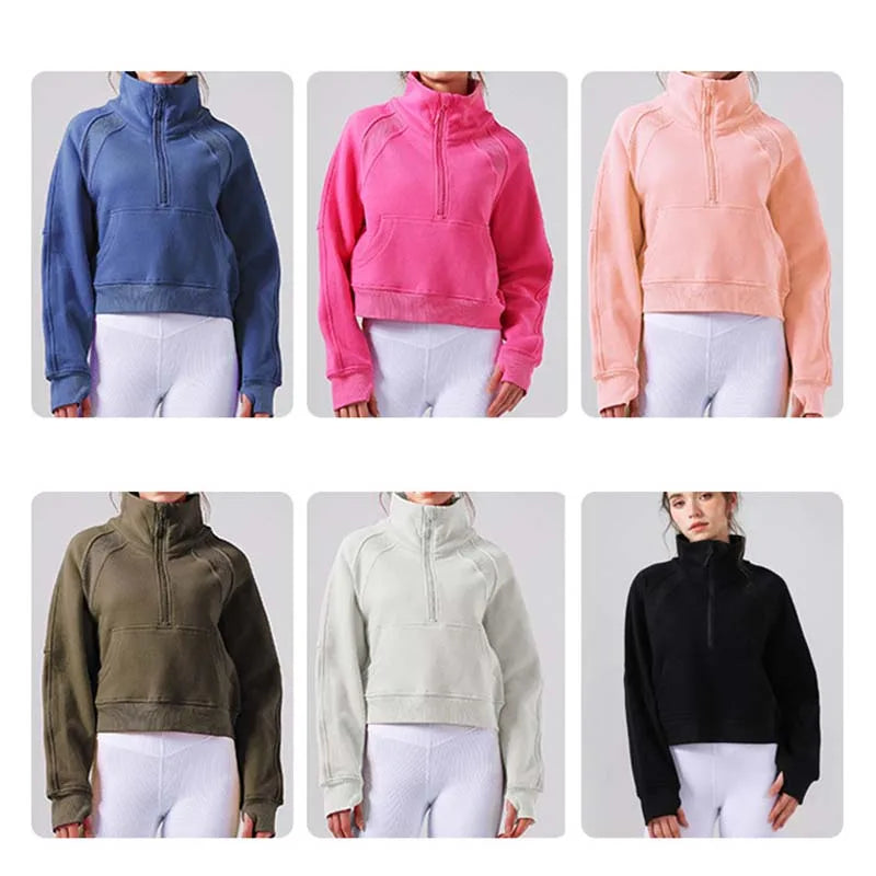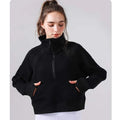 Popular autumn and winter women's sports sweatshirts solid color thermal tops casual windproof sportswear outdoor loose tops