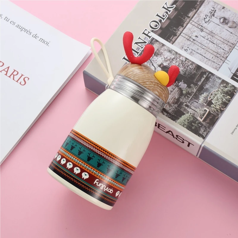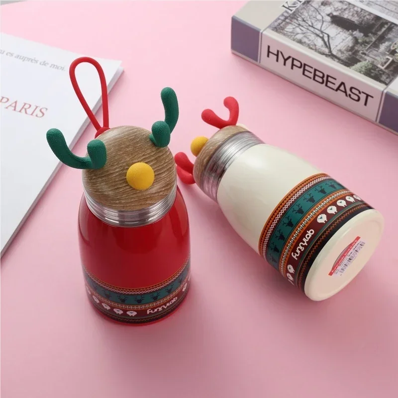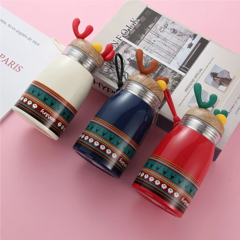 Portable Handle Cartoon Insulated Cup with Christmas Reindeer Design 304 Stainless Steel Suitable for Students
