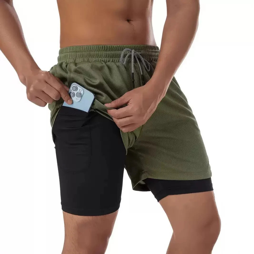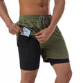 Print 2 in 1 Running Shorts for Men Gym Workout Compression Shorts with Phone Pocket Towel Loop Summer Sport Athletic Activewear