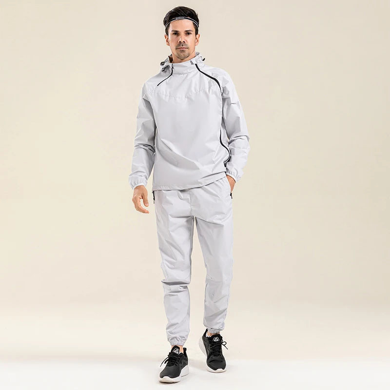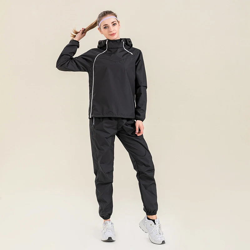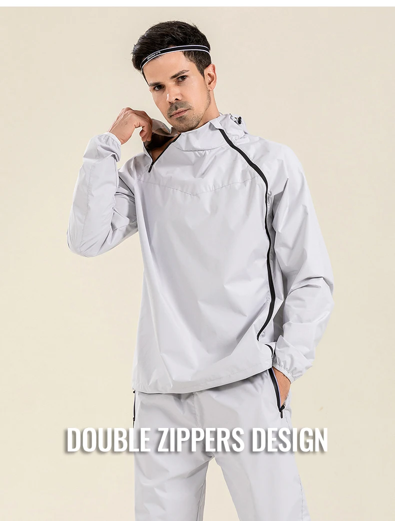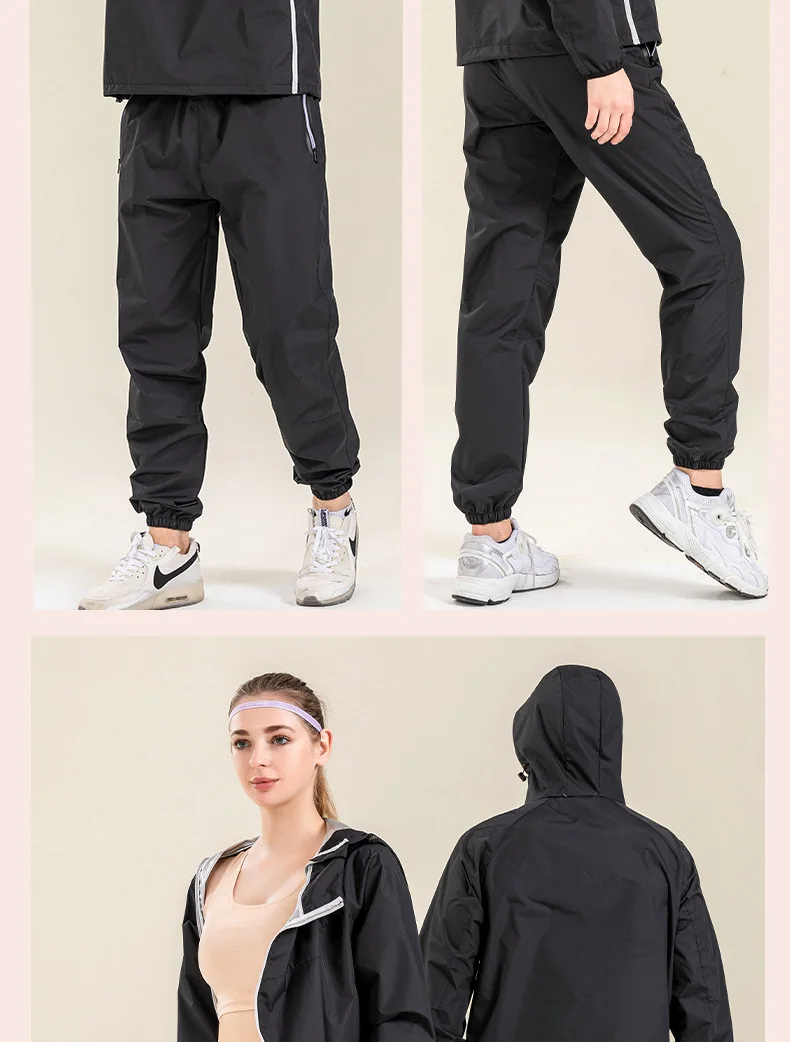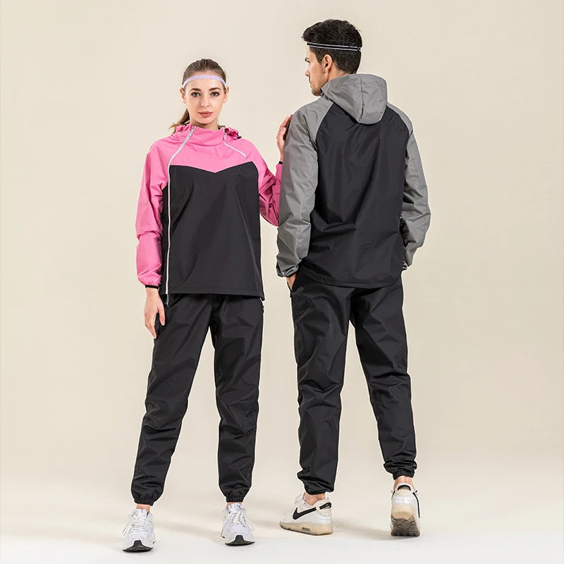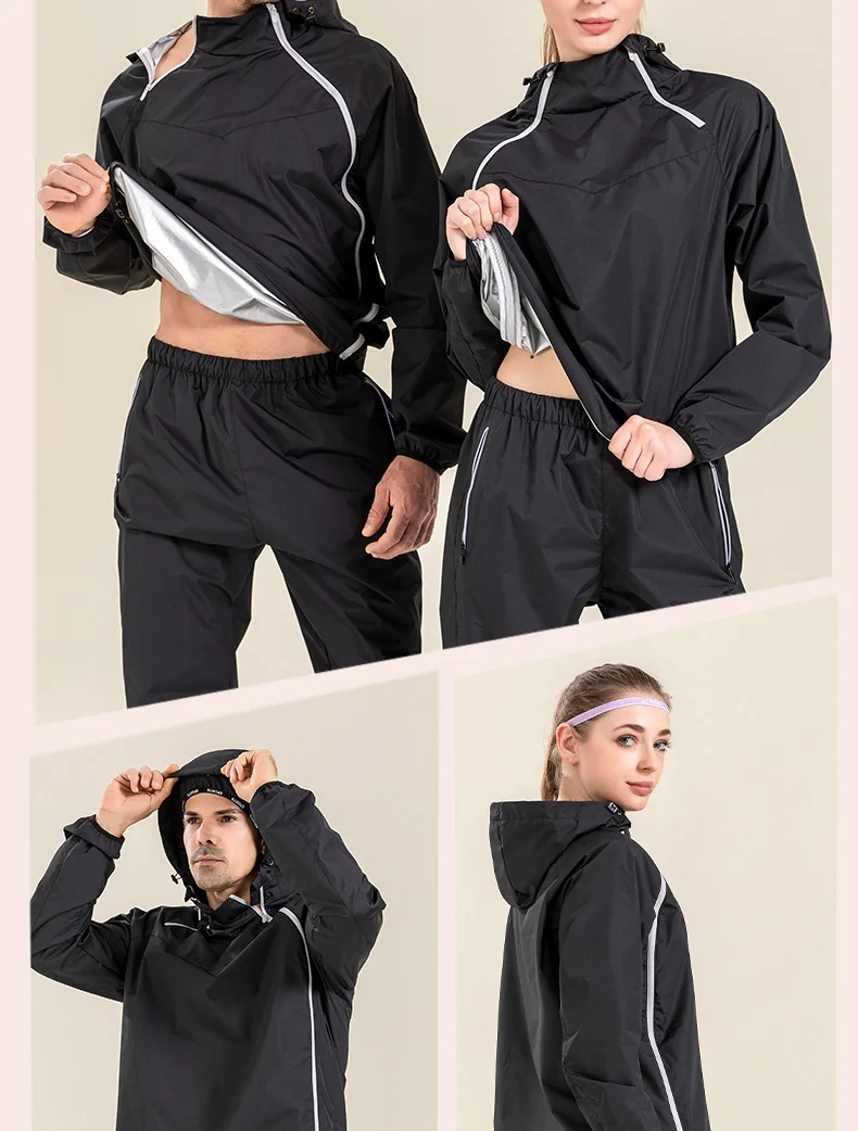 Profession Sauna Suit Unisex Gym Clothing Set Double Zipper Hooded Running Fitness Exercise Sportswear Weight Loss Sweating Suit