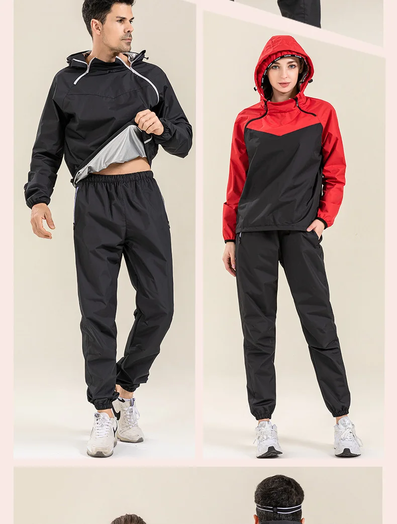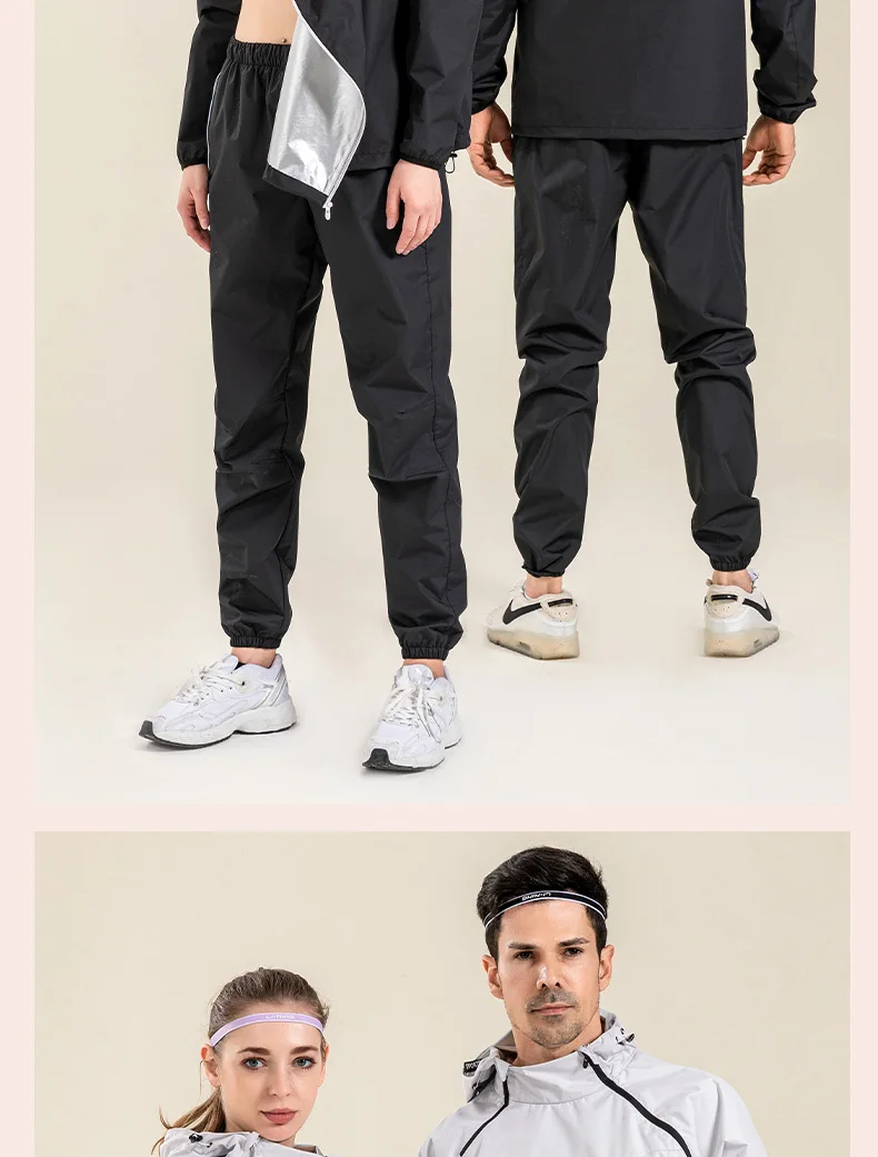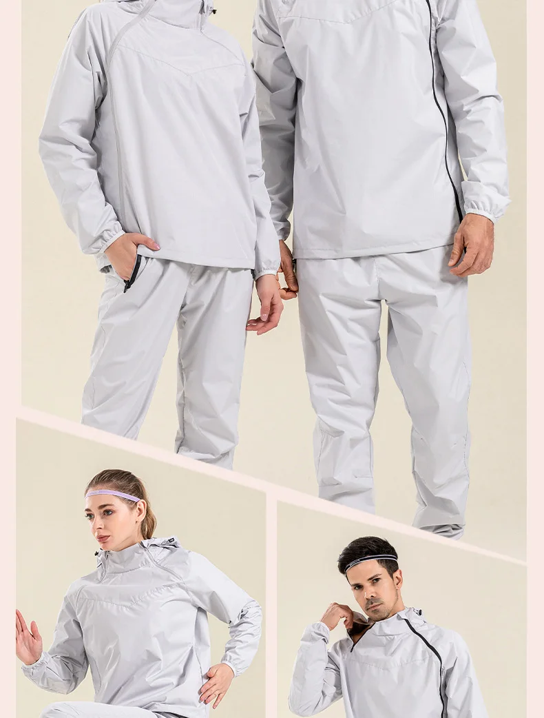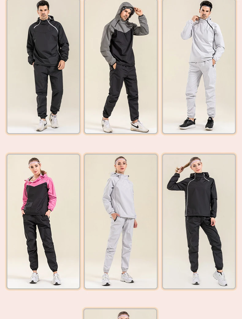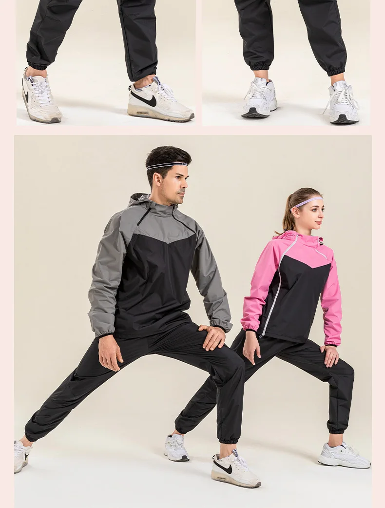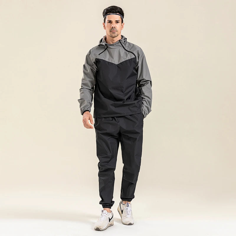 Profession Sauna Suit Unisex Gym Clothing Set Double Zipper Hooded Running Fitness Exercise Sportswear Weight Loss Sweating Suit