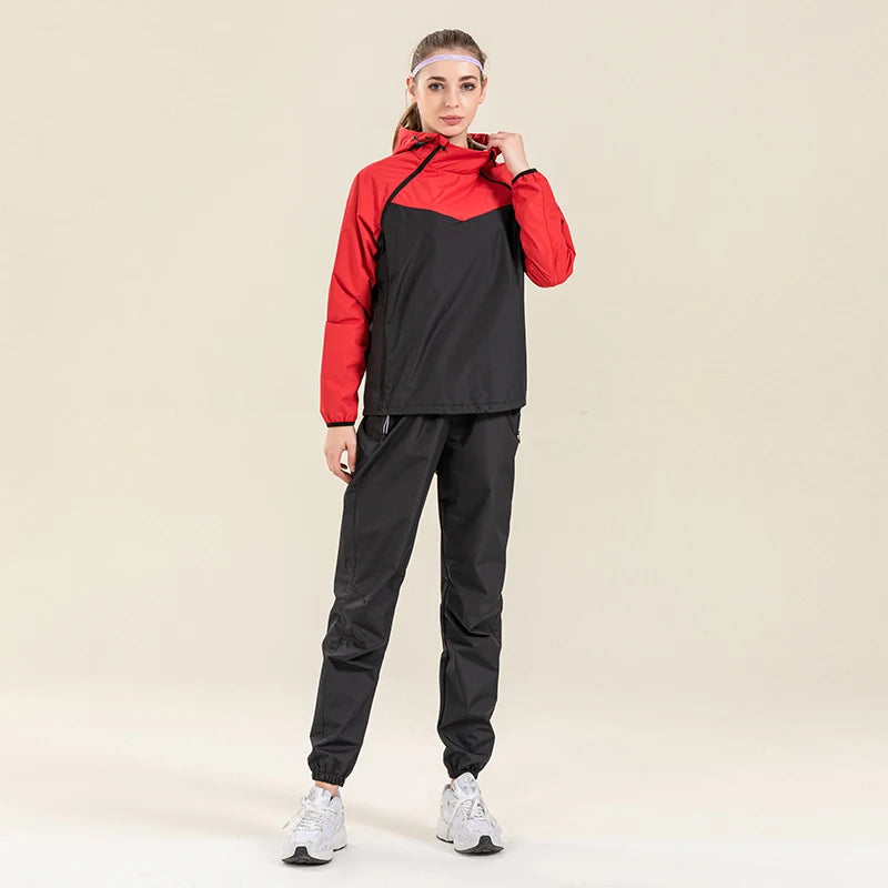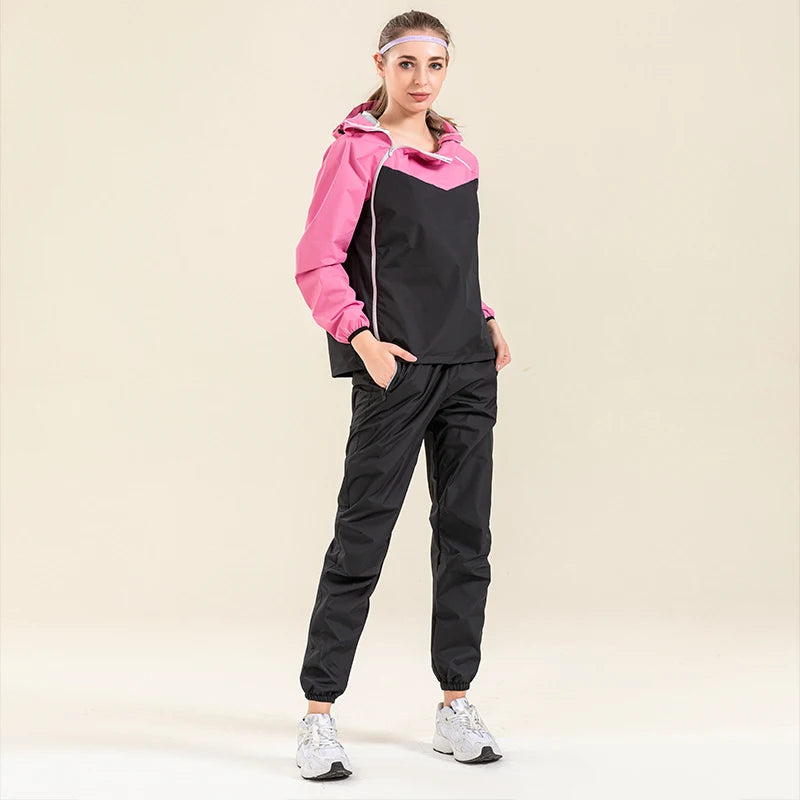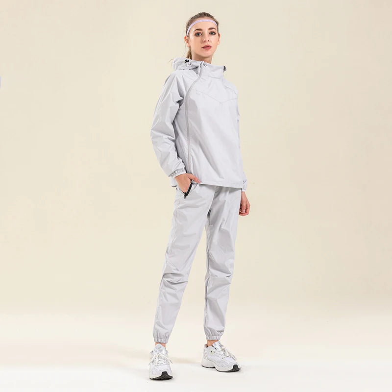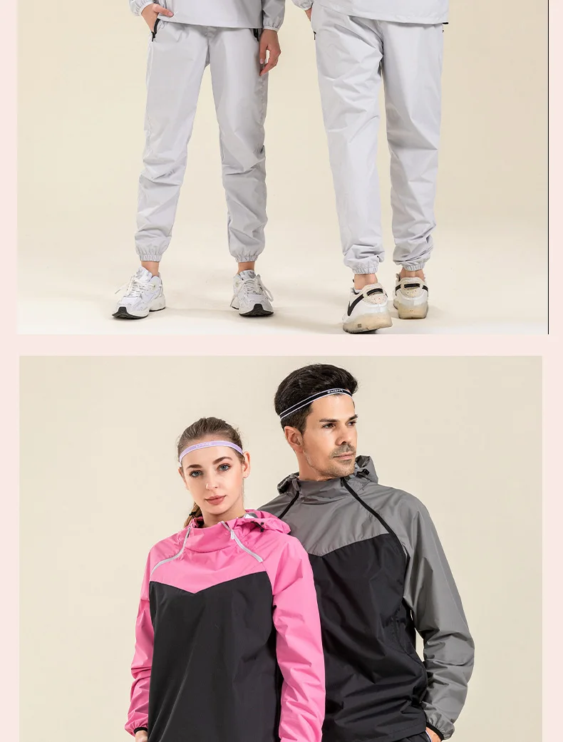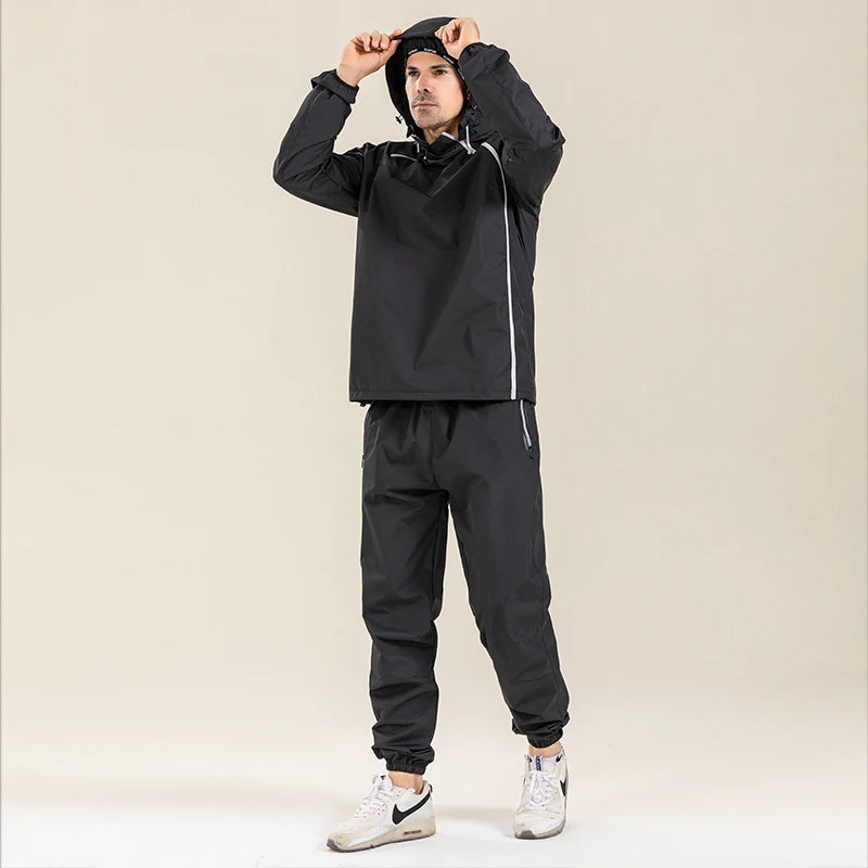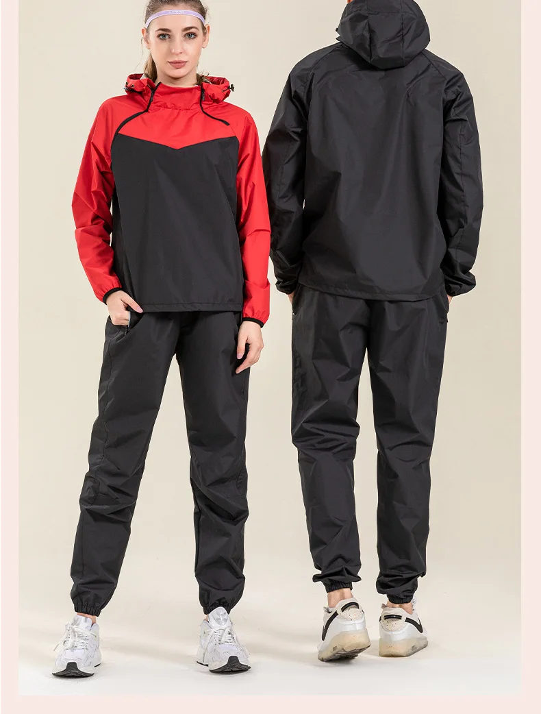 Profession Sauna Suit Unisex Gym Clothing Set Double Zipper Hooded Running Fitness Exercise Sportswear Weight Loss Sweating Suit