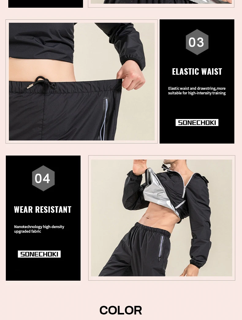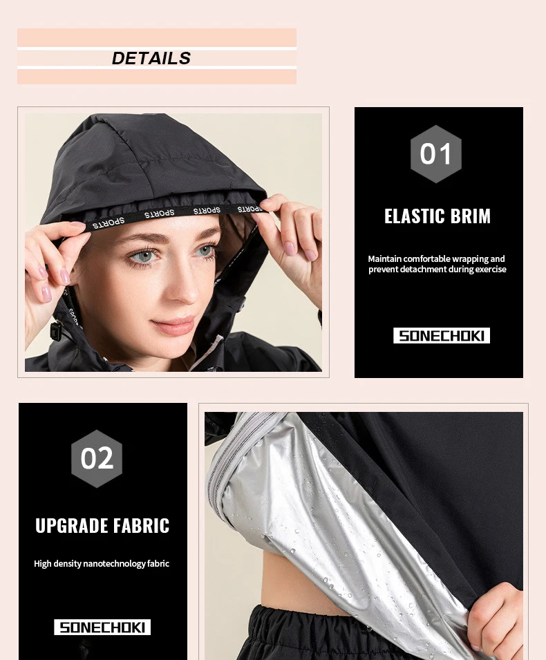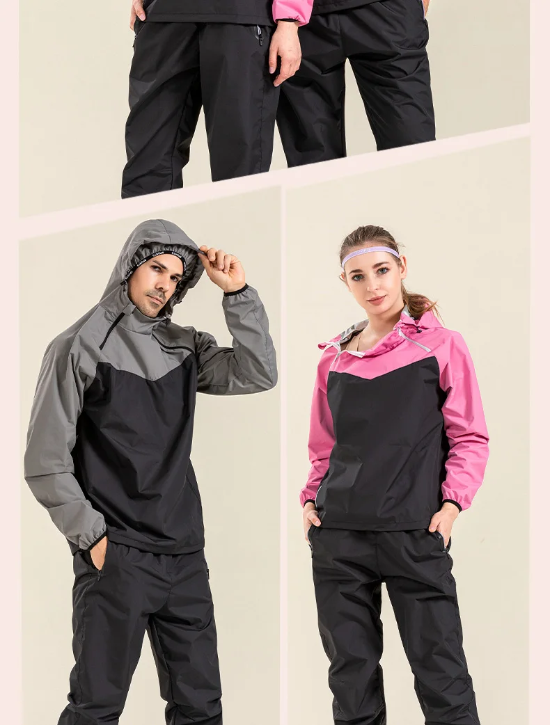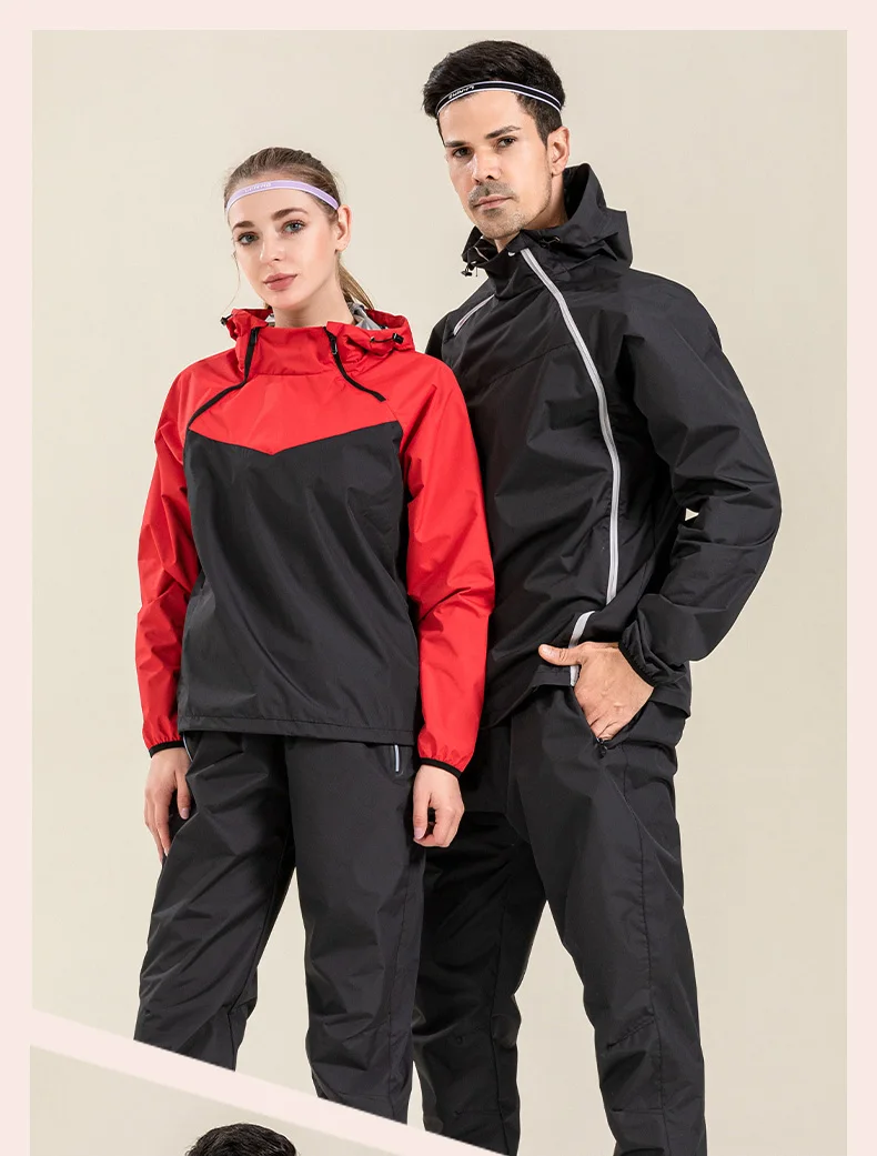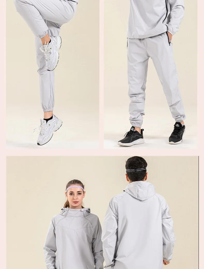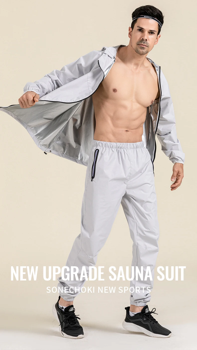 Profession Sauna Suit Unisex Gym Clothing Set Double Zipper Hooded Running Fitness Exercise Sportswear Weight Loss Sweating Suit