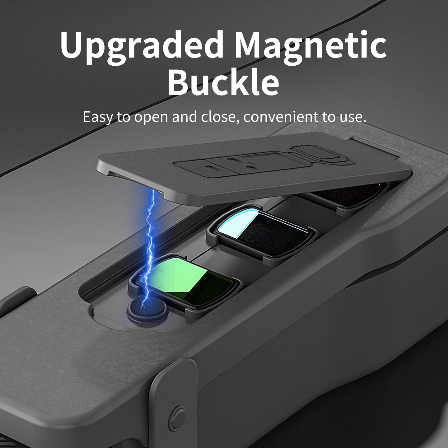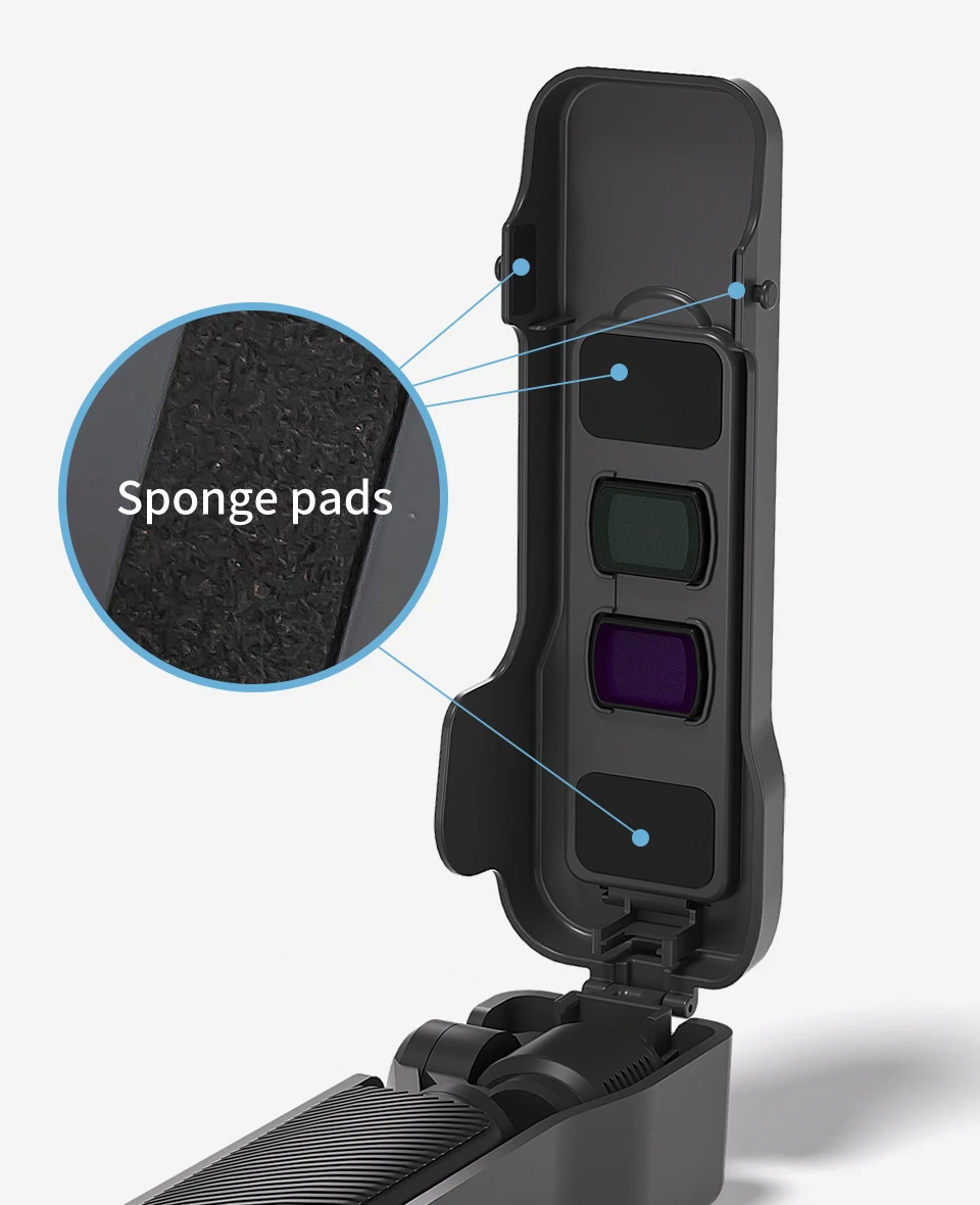 The magnetic closure to fix the small flip cover, prevents the filters from dust and scratch.
