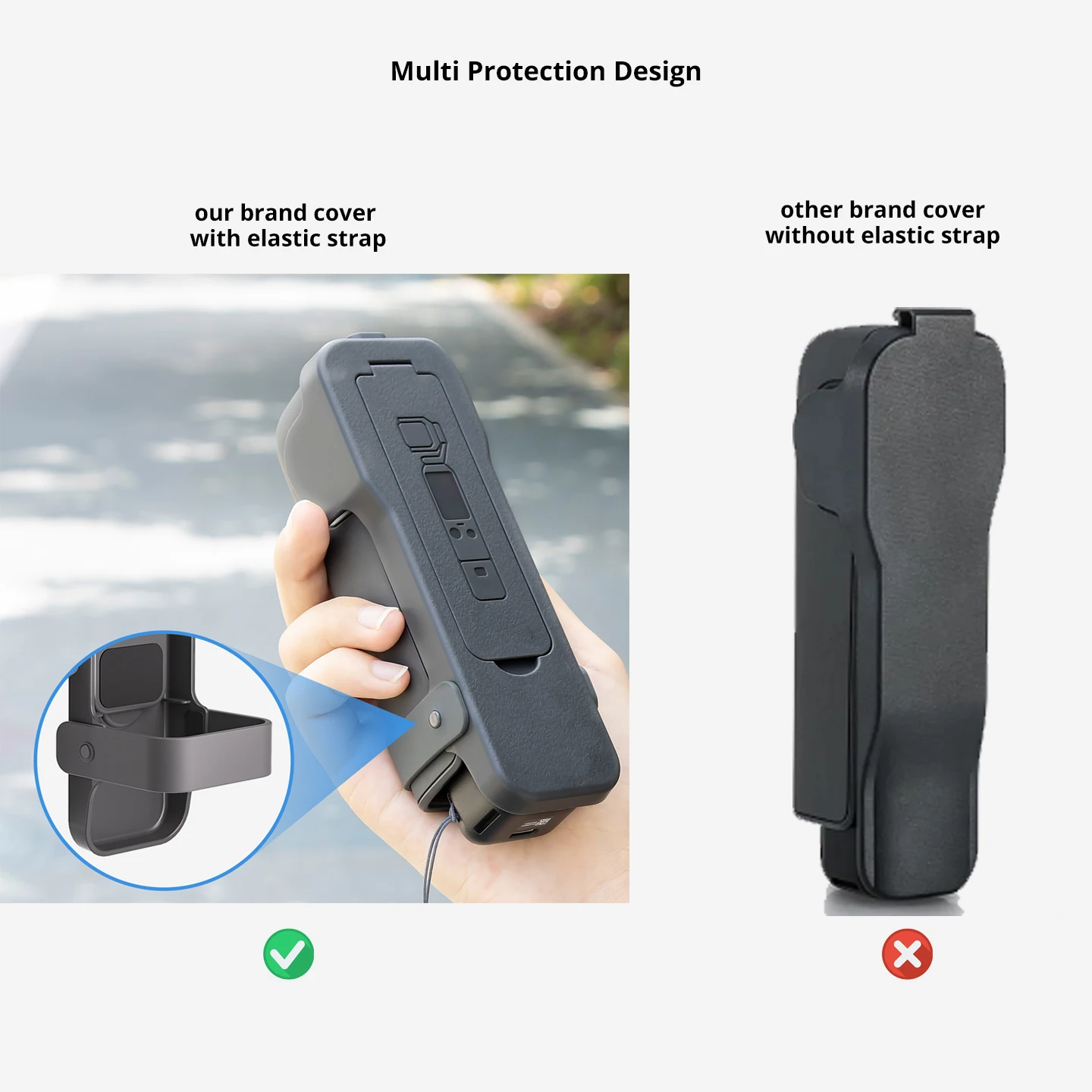 Elastic strap to keep the flip cover firmly, protects your camera well.
