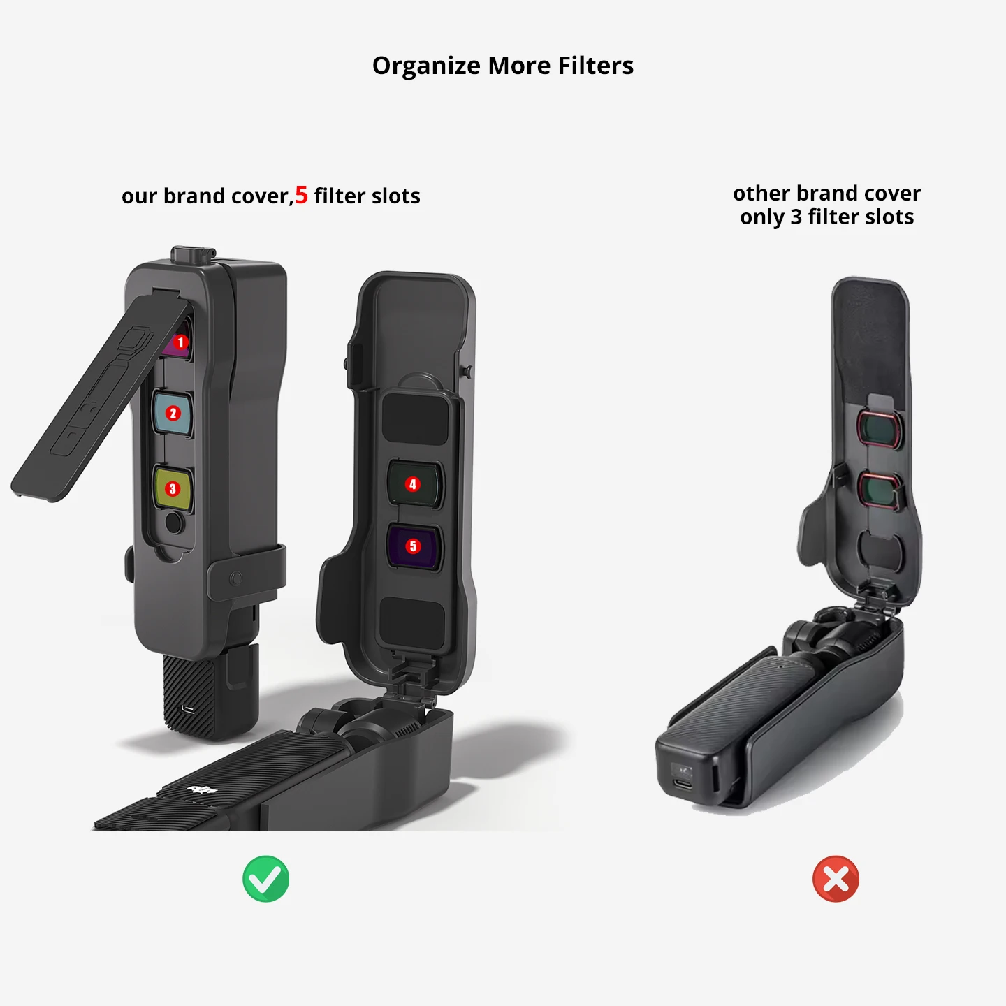 Protective Cover for DJI OSMO Pocket 3 Flip Cover with 5 Filter Slots and Elastic Band Pocket 3 Accessories