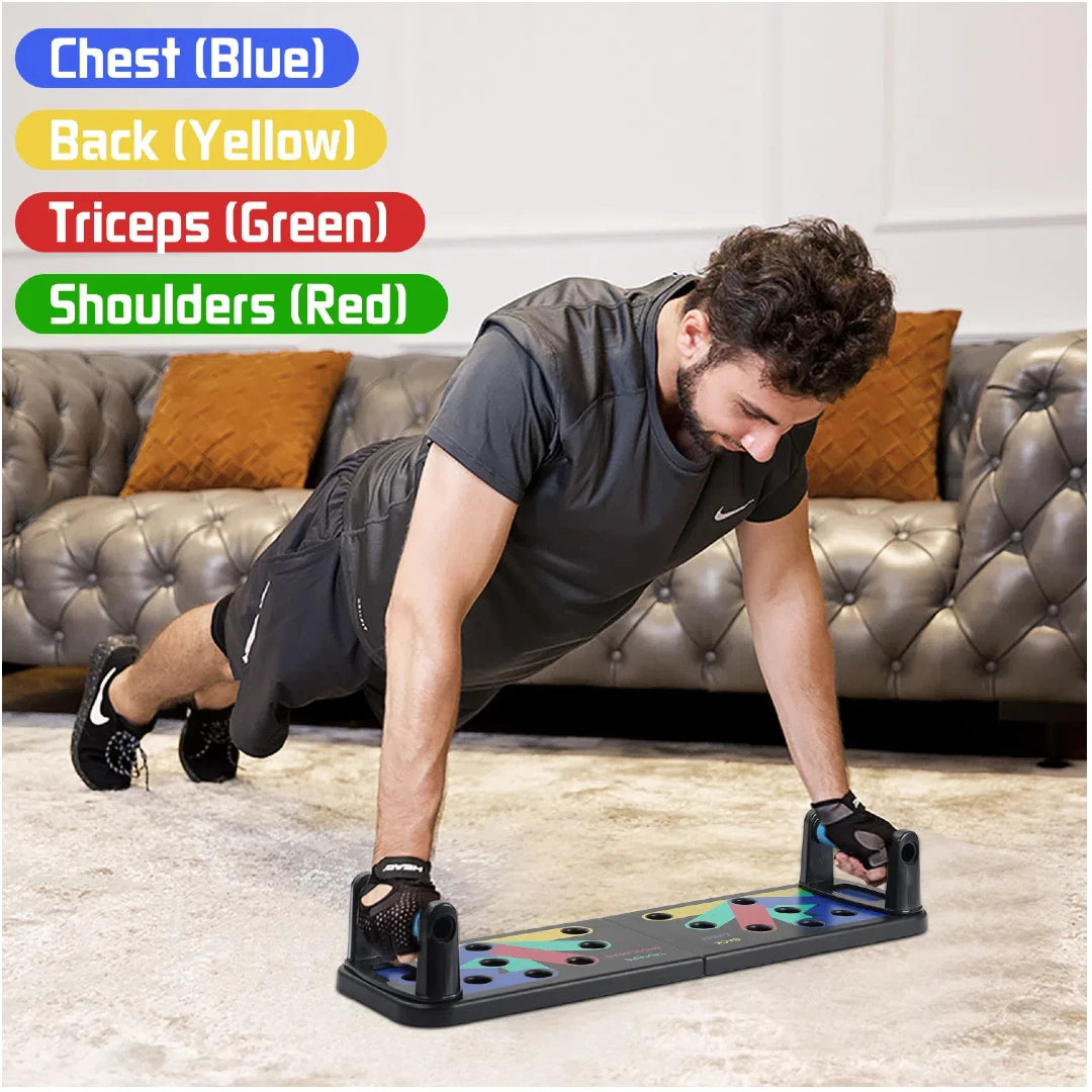Target Chest, Shoulders, Back & Triceps with this 9 in 1 Push Up Board – Full Body Workout Equipment for Strength Training, Muscle Building & Home Fitness.