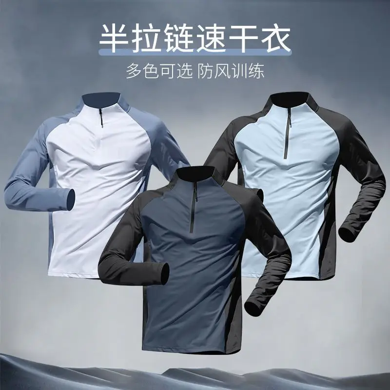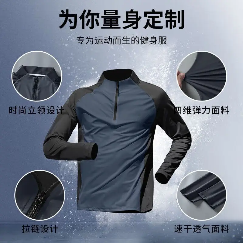 Quick Dry Male Clothes Tracksuit T-shirt Sets Spring Autumn Men Half Zipper Long Sleeve Breathable Sports Training Pants Suit