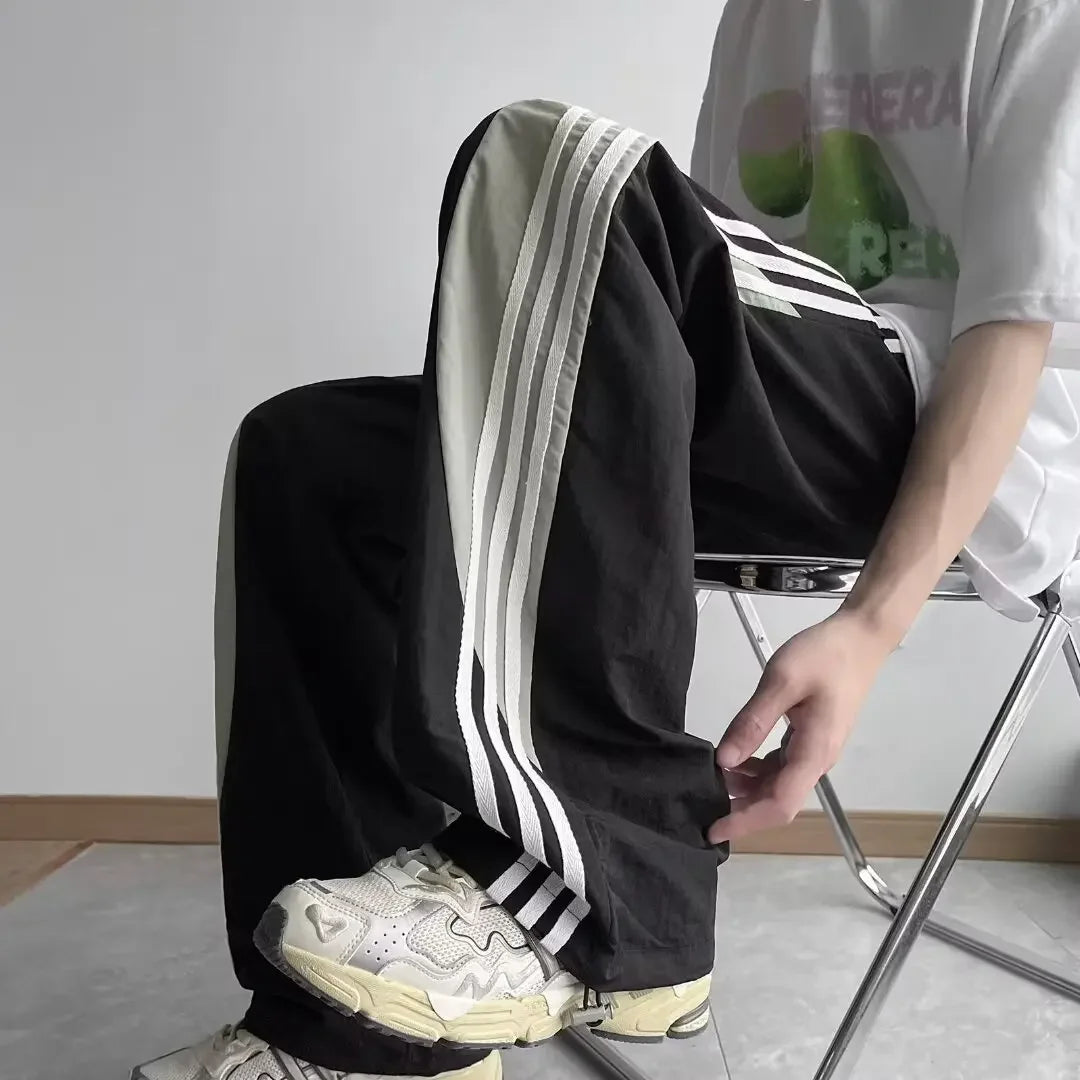 Quick-Drying Men's Straight-Leg Casual Pants Summer Thin Style Three-Stripe Color Blocking Loose Fit American Style Sport Paratr