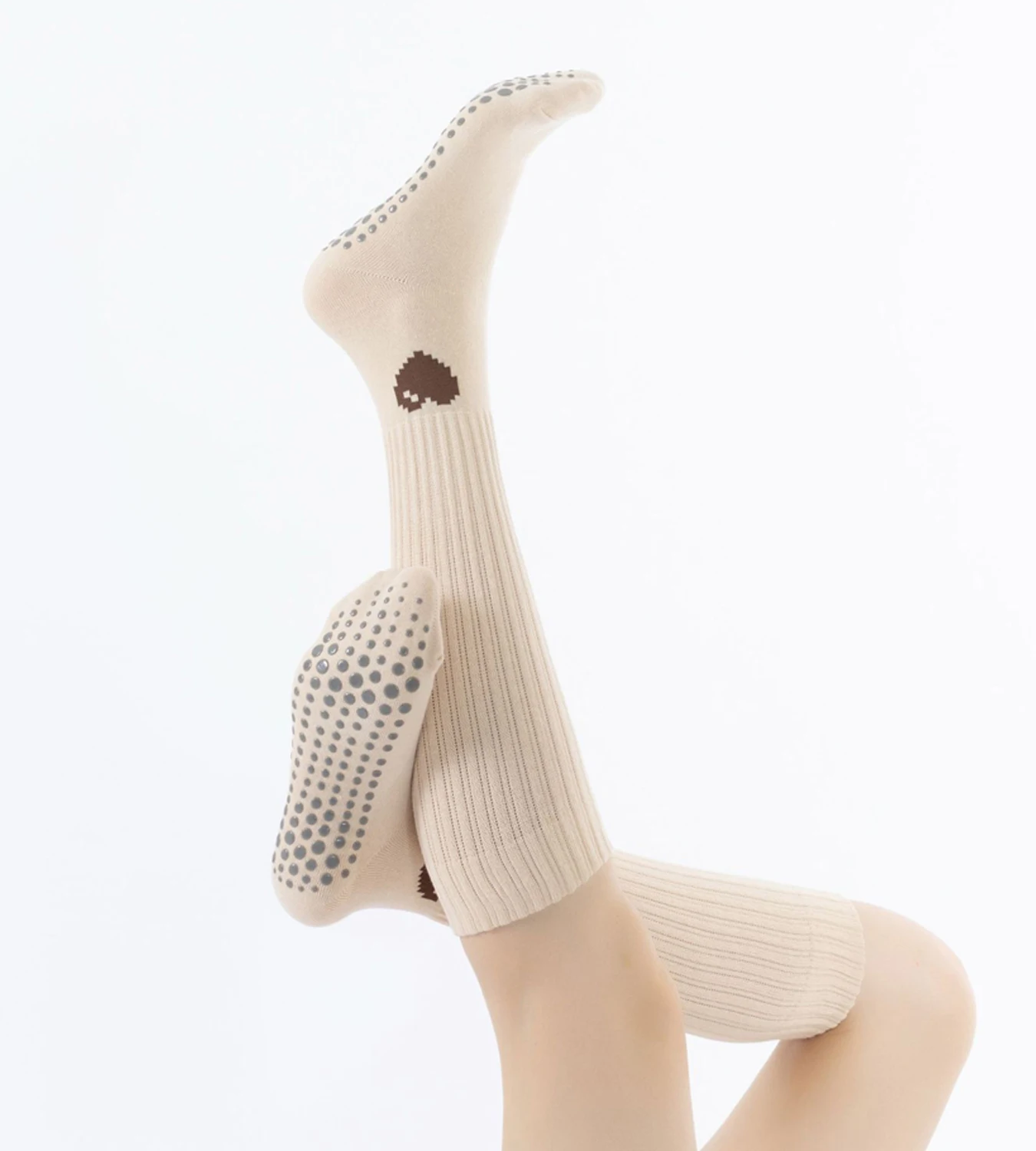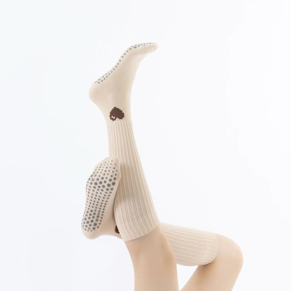 Retro heart pattern Yoga Pilates socks for women Non-slip floor sports Calf socks