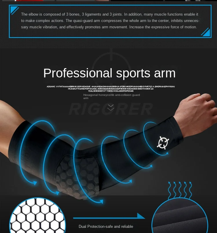 RIGORER 1PC Elbow Honeycomb Anti-collision Arm Protection Sun Protection Sports Fitness Training Football Basketball Equipment