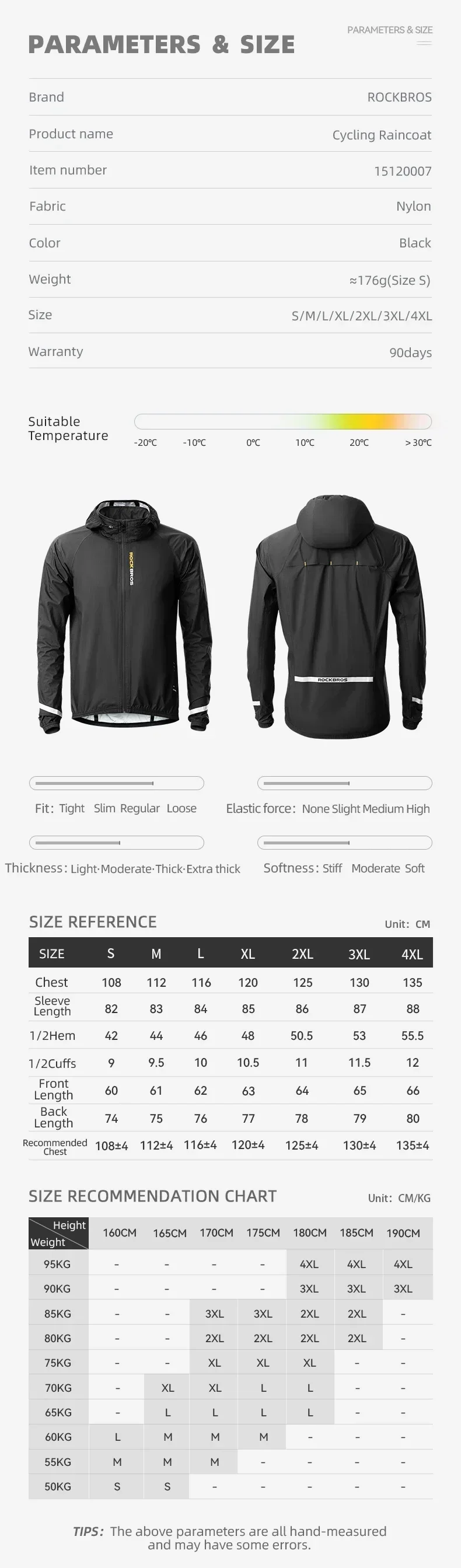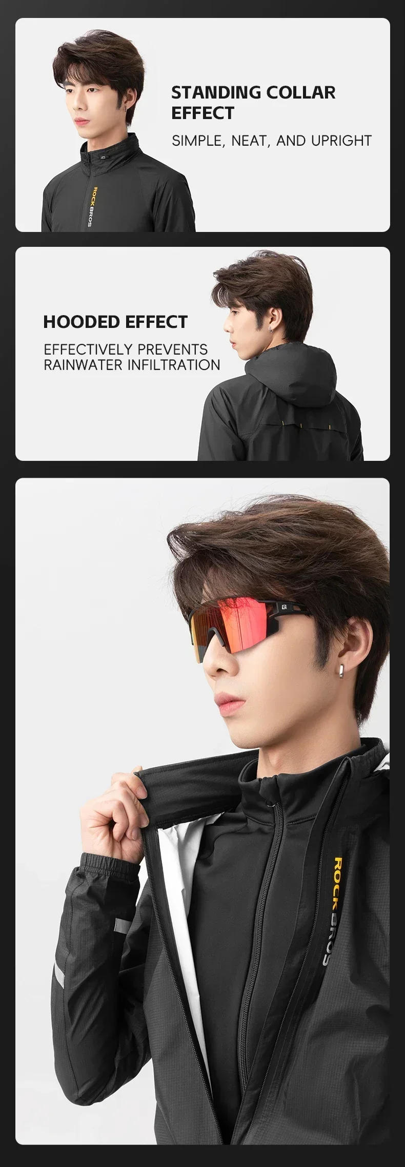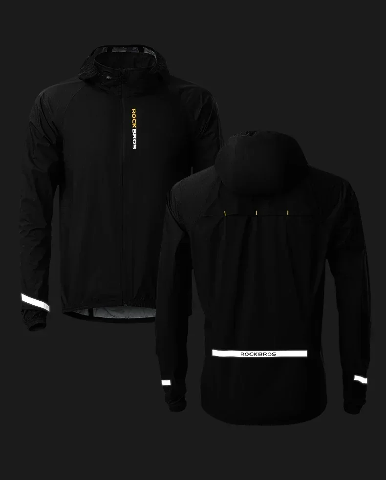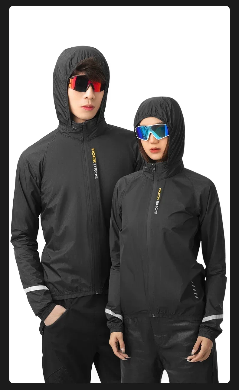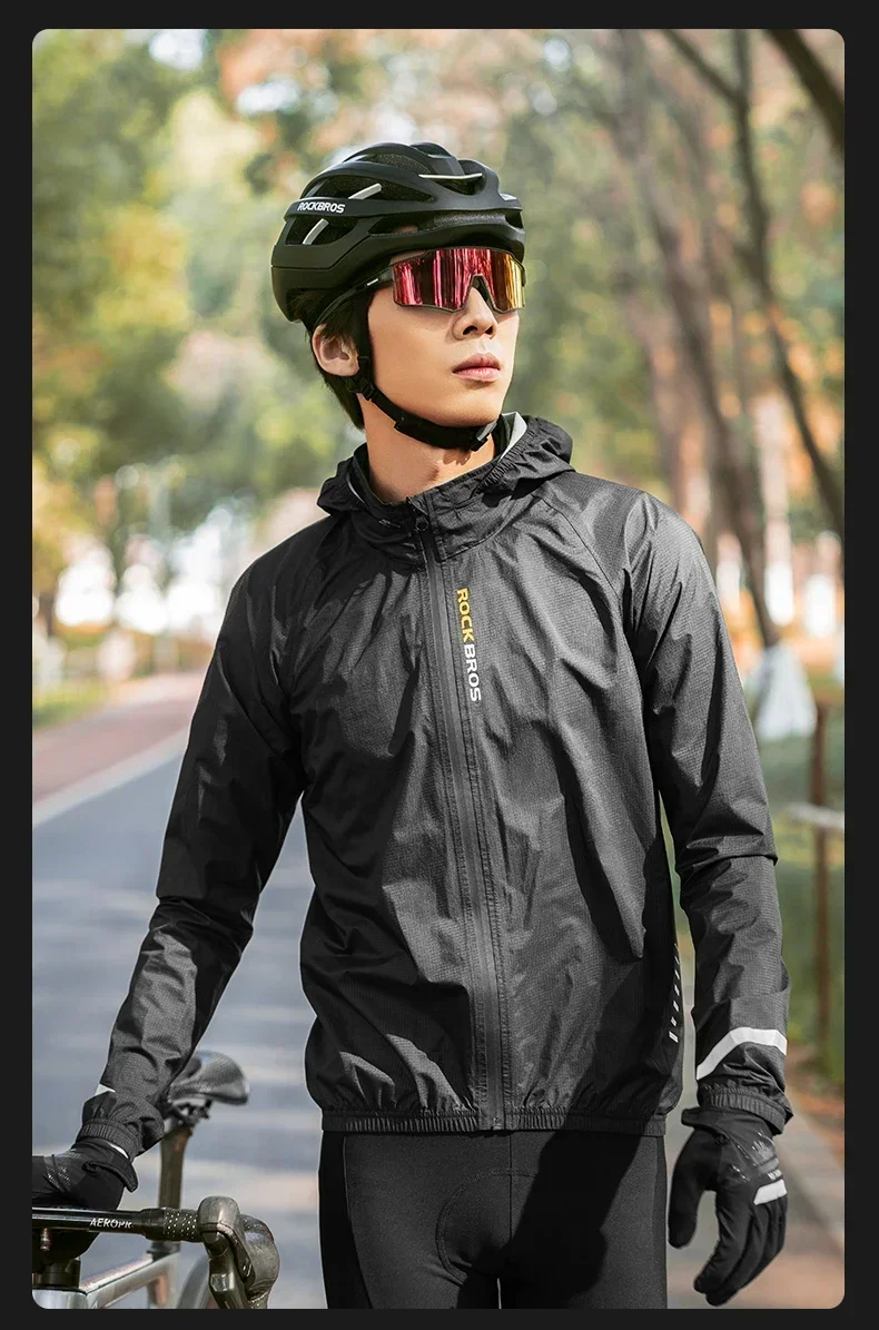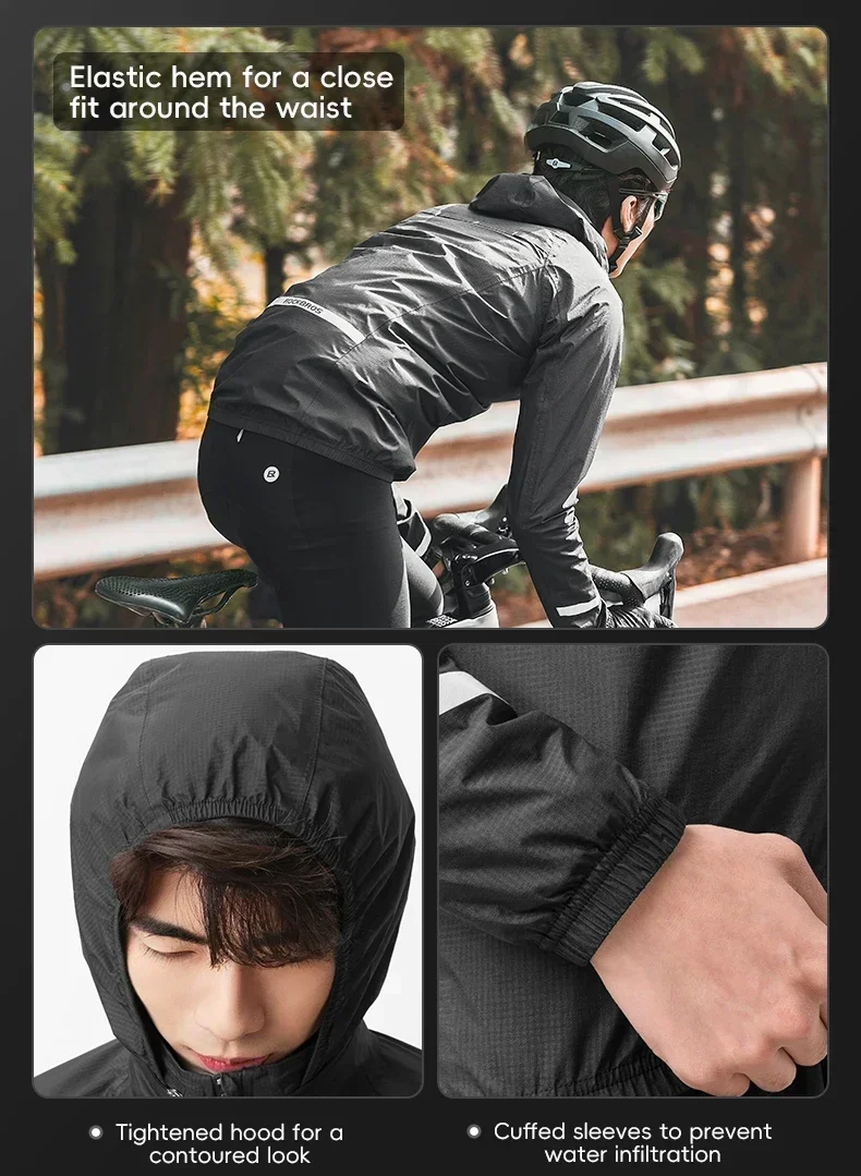 ROCKBROS Raincoat Cycling Waterproof Jacket Lightweight Motorcycle Rain Coat Breathable Reflective Hooded Outdoor Windbreaker