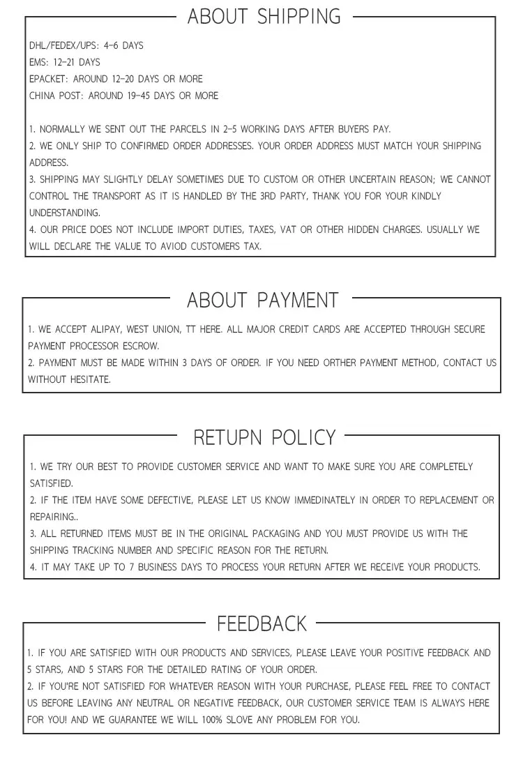 Please be aware that if the order is canceled at the customer's request, a 5% payment processing fee will not be refunded.