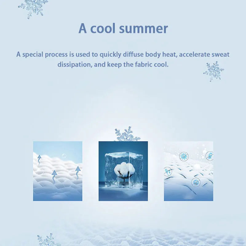 The ice silk fiber has long-lasting heat dissipation, making the skin feel cool to the touch.