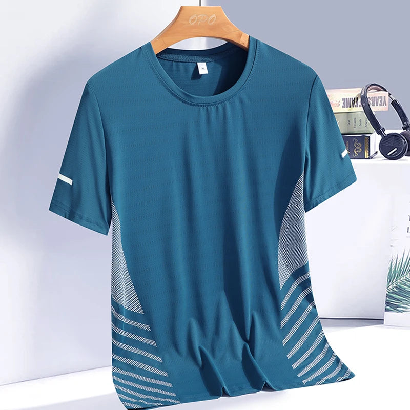 Running T-shirt Men Summer Ice Silk Elasticity Thin Top Printing Quick Dry Short Sleeve Breathable Fitness Sports T-shirt 5XL