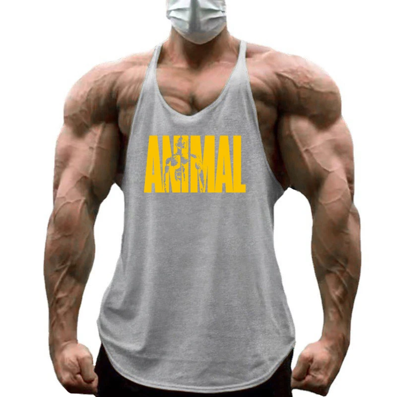 Running Vests Mens ANIMAL Letters Printed Gym Stringer Tank Tops Cotton Bodybuilding Sleeveless Singlets Muscle Fitness Clothing