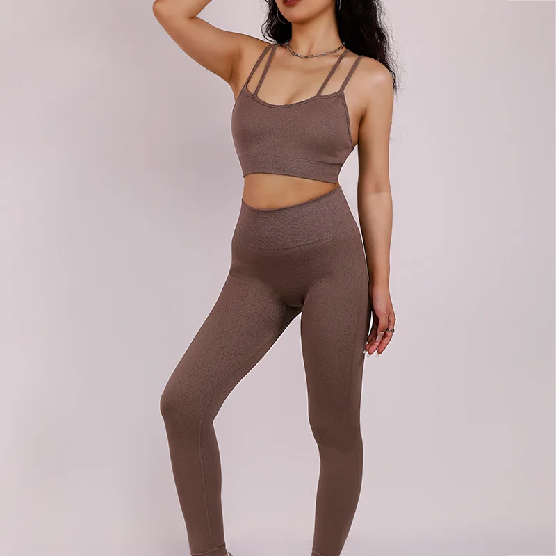 Experience comfort without seams with our seamless yoga set, ensuring a smooth fit and unrestricted movement.