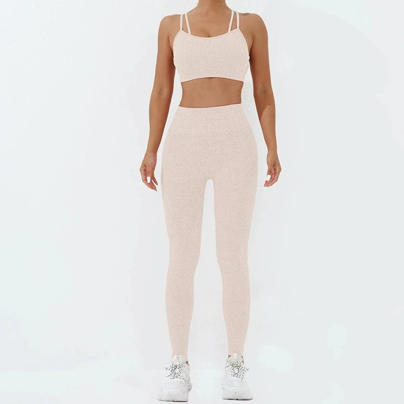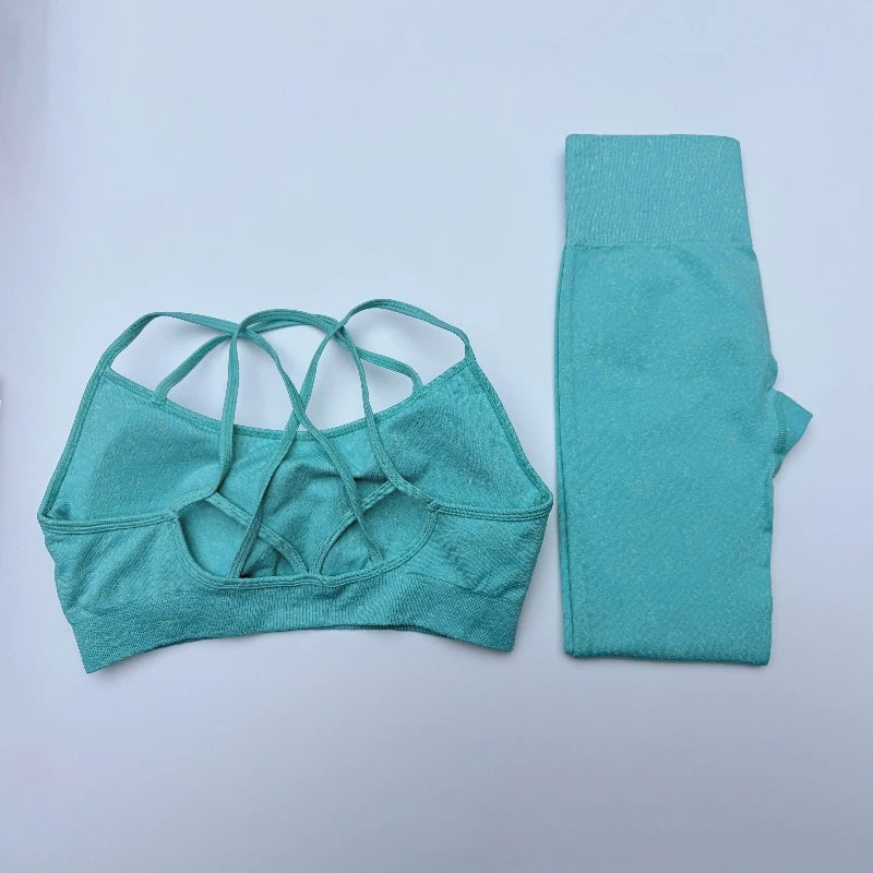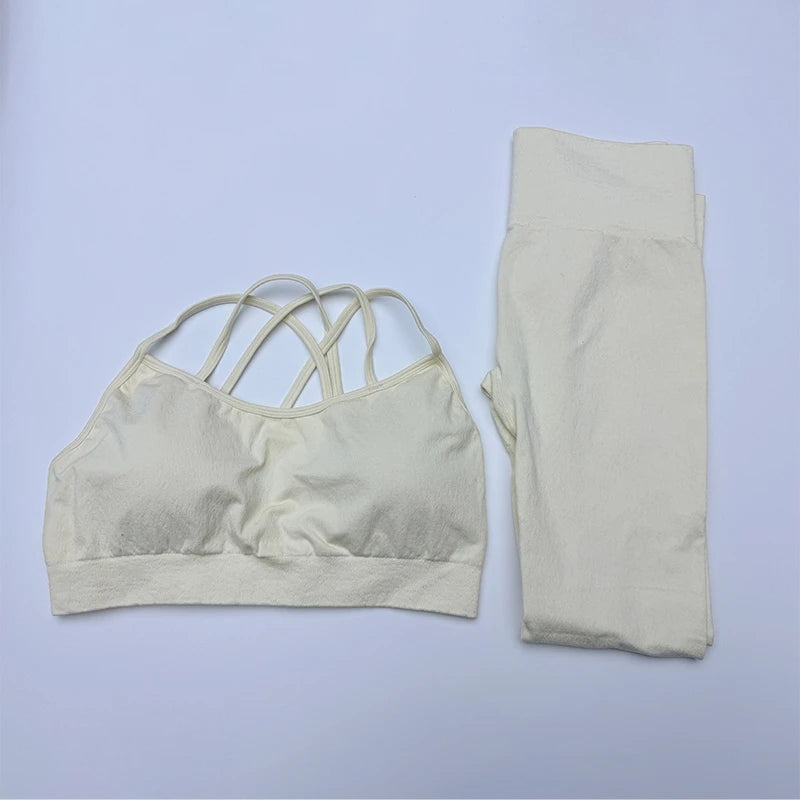 Seamless Cross Sports Bra Vest Leggings Suit High Waist Fitness High Elastic SportsTop Woman Gym Running Yoga Butt Lift Tights