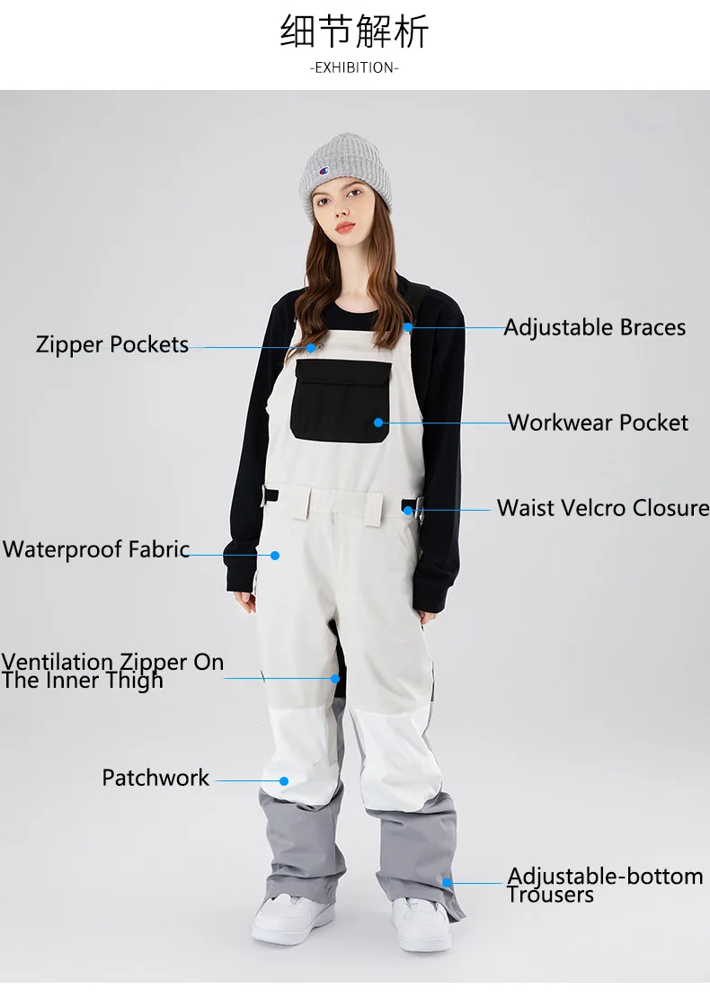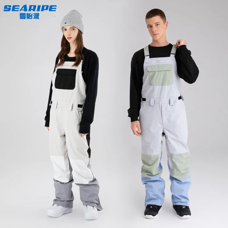 SEARIPE 2025 Snowboard Bib Pants - Waterproof & Abrasion-Resistant Colorblock Design for Men & Women - Outdoor Sports
