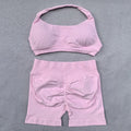Shorts Set 2 Pieces Seamless Yoga Set Workout Tracksuit Women Halter Sport Bra And Low Waist Scrunch Bum Gym Shorts Suits