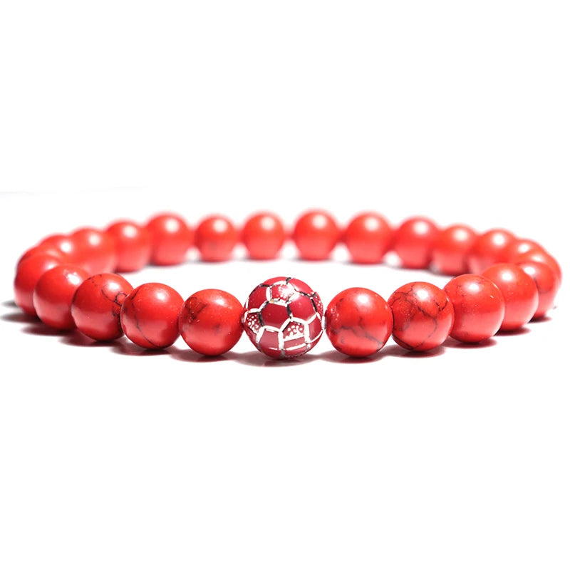 Simple Style Football Bracelet Unisex Matte Stone Beaded Braslet Sports Enthusiast Accessories Red Braclet Leisure Pulseira