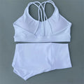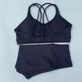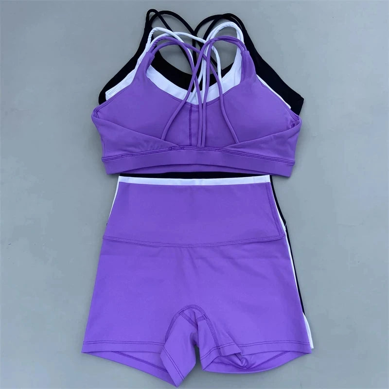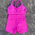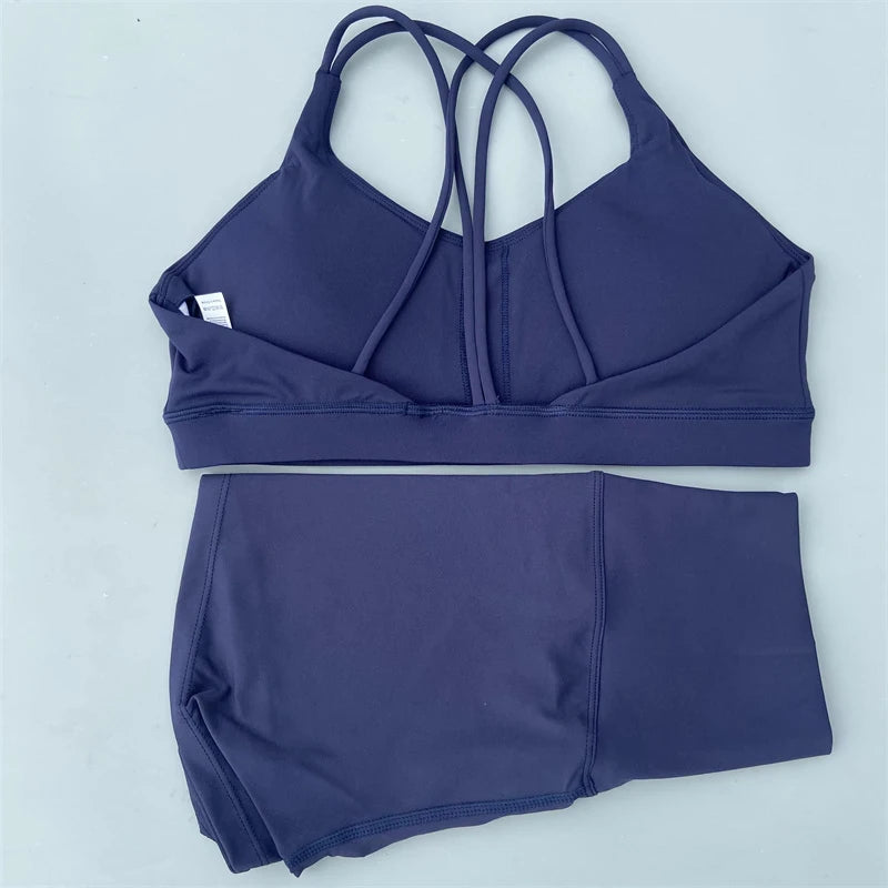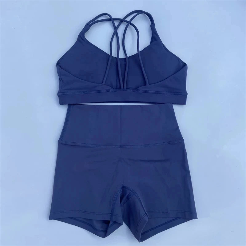 Solid Color Gym Bike Yoga Set Short Legging +Cross Sport Bra Tracksuit Athletic Women Gym Suit Comprehensive Training Jogging